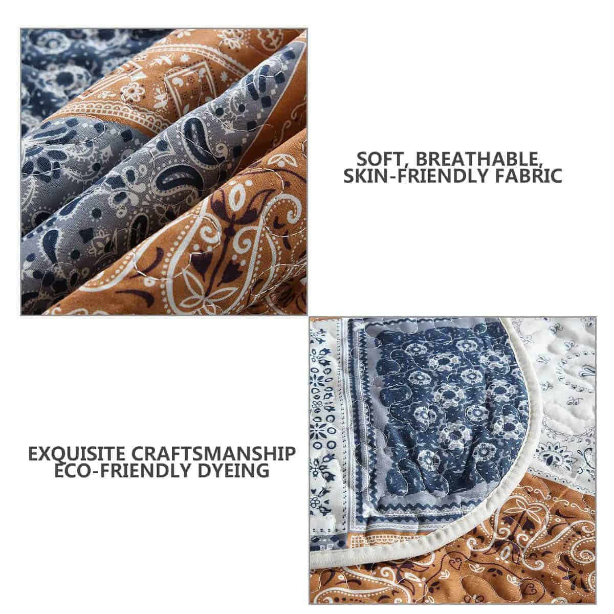 Este juego de colchas Travan de 3 piezas con fundas de almohada ofrece comodidad durante todo el año gracias a su material de microfibra súper suave y ligero. El diseño de la colcha es reversible, con un hermoso estampado floral en ambos lados. El set incluye 1 colcha y 2 fundas de almohada para una combinación completa de 3 piezas. Perfecto para una cama tamaño queen, con medidas de 90 x 98 pulgadas y es apto para colchones de hasta 18 pulgadas de profundidad. Fácil de cuidar, lavable a máquina en agua fría, secar a baja temperatura y no usar lejía.