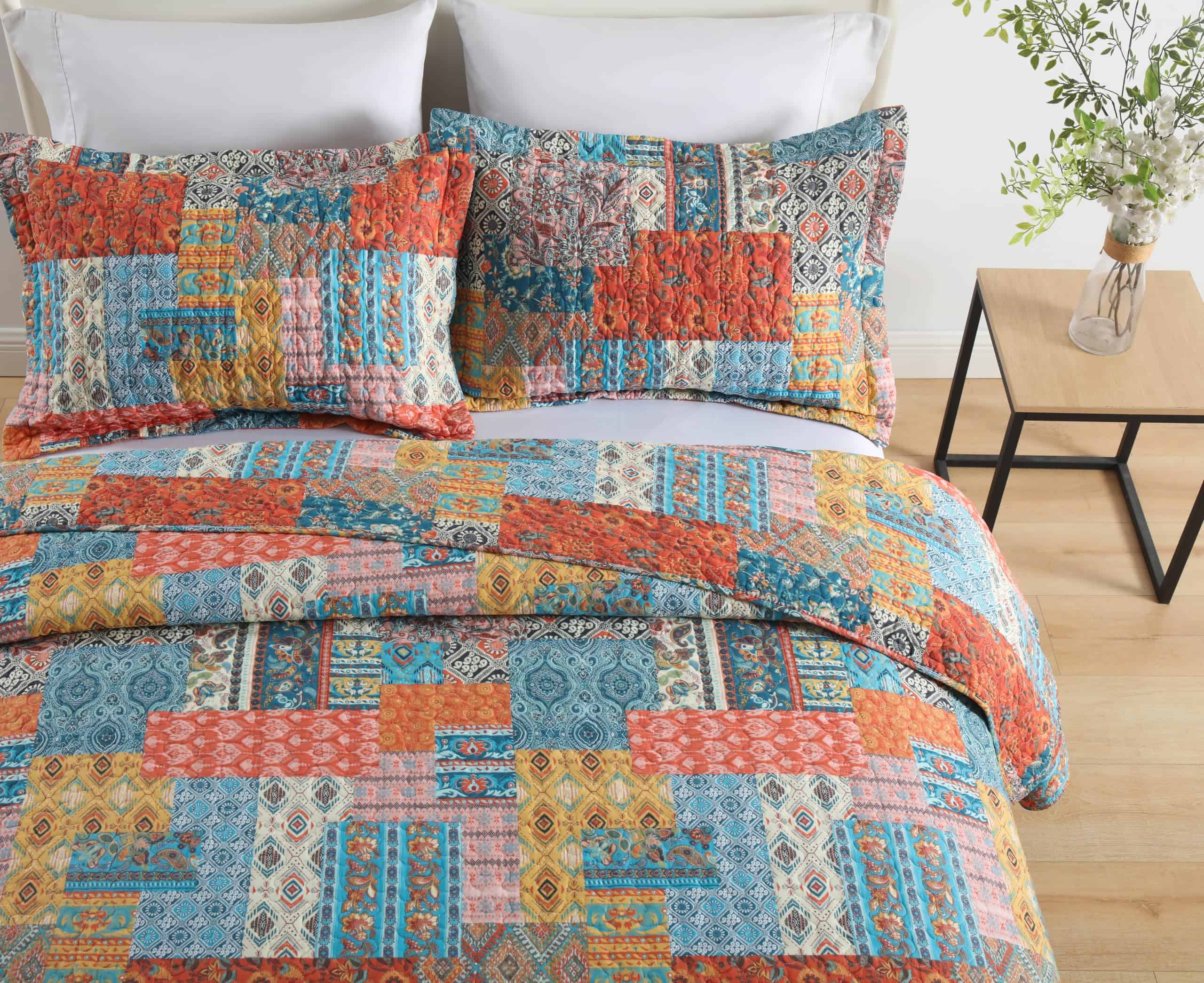 Juego de Colchas y Edredones Reversibles de Algodón