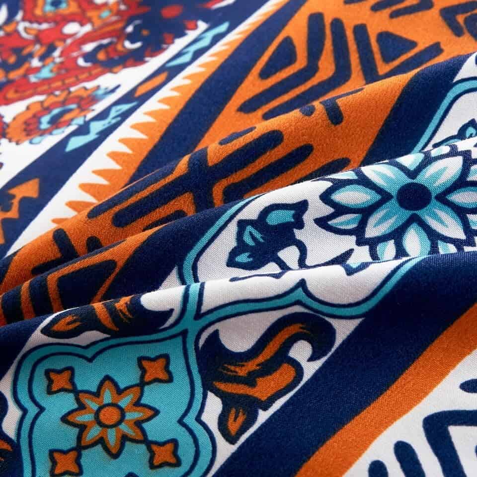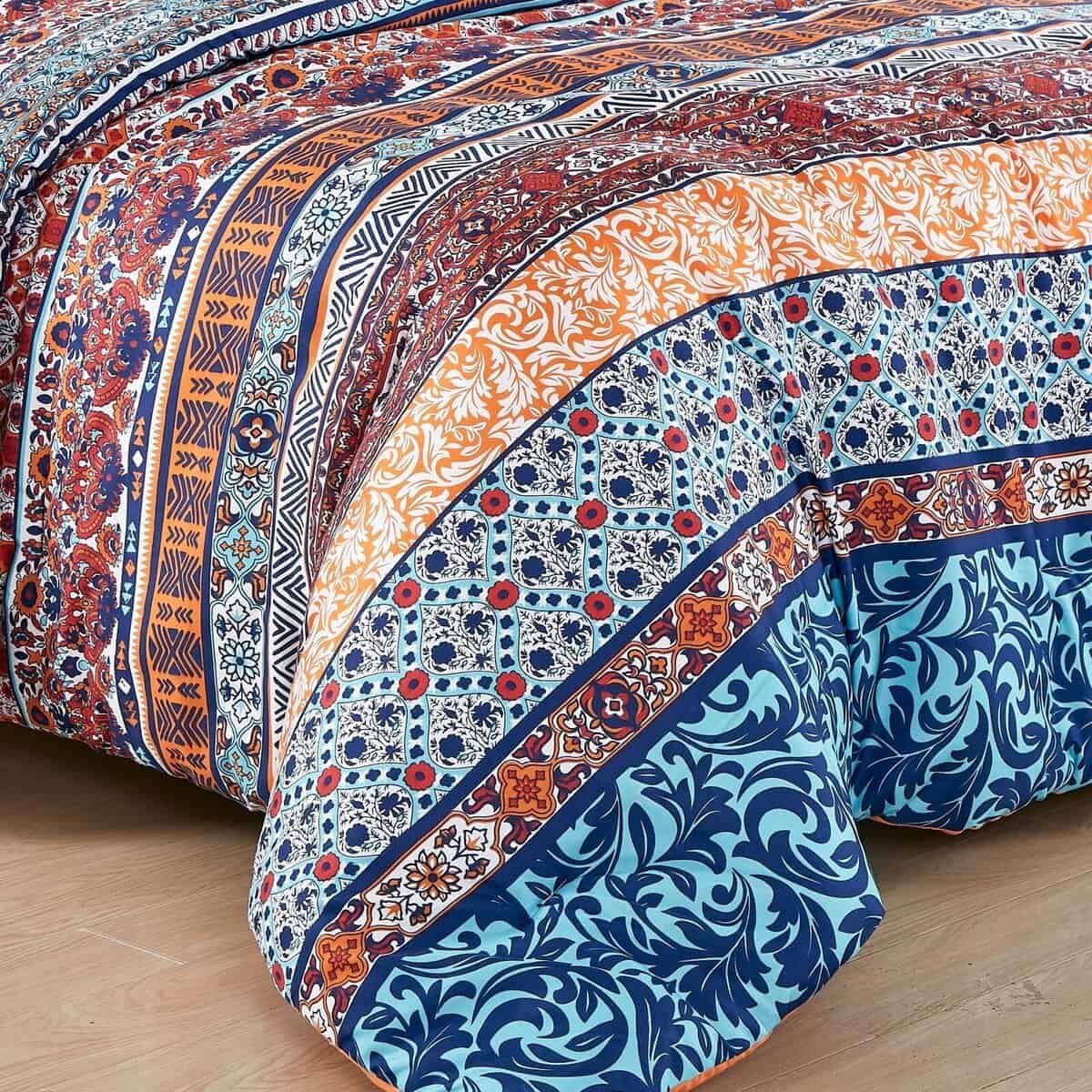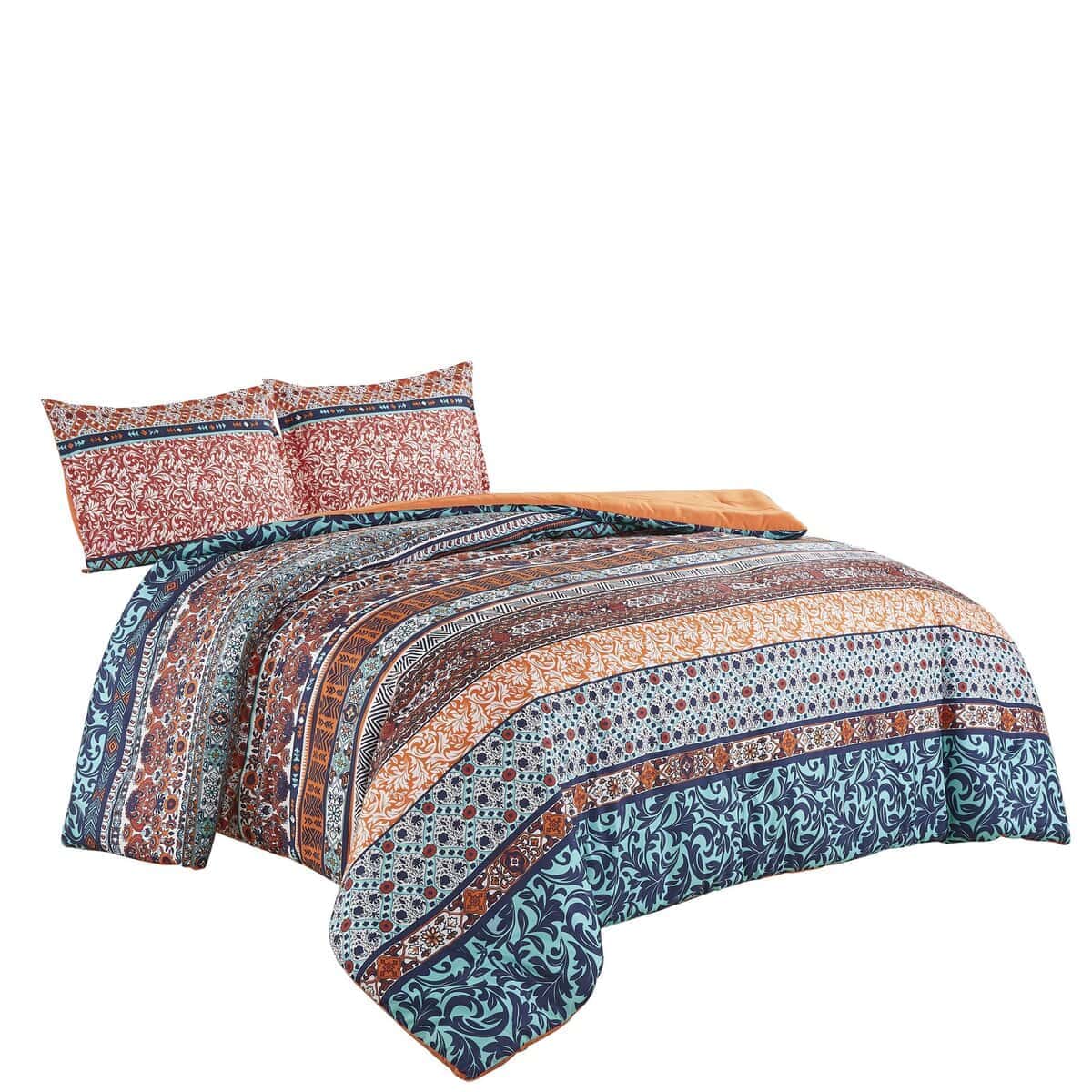 Añade diversión única, audaz y colorida a tu dormitorio con este juego de comforter floral bohemio a rayas. El comforter cuenta con una combinación de colores vibrantes y audaces, diseños de medallones, flores y patrones geométricos intrincados en un diseño de rayas que crean un patrón único y llamativo. La combinación de rayas horizontales y diseños boho crea un patrón hermoso e intrincado que añade profundidad y textura a la ropa de cama. Hecho de una microfibra de poliéster suave y cómoda, el comforter es ligero, lo que lo hace adecuado para usar durante todo el año. Una opción de ropa de cama hermosa y única que añade un toque de personalidad y estilo a cualquier colección de dormitorio.