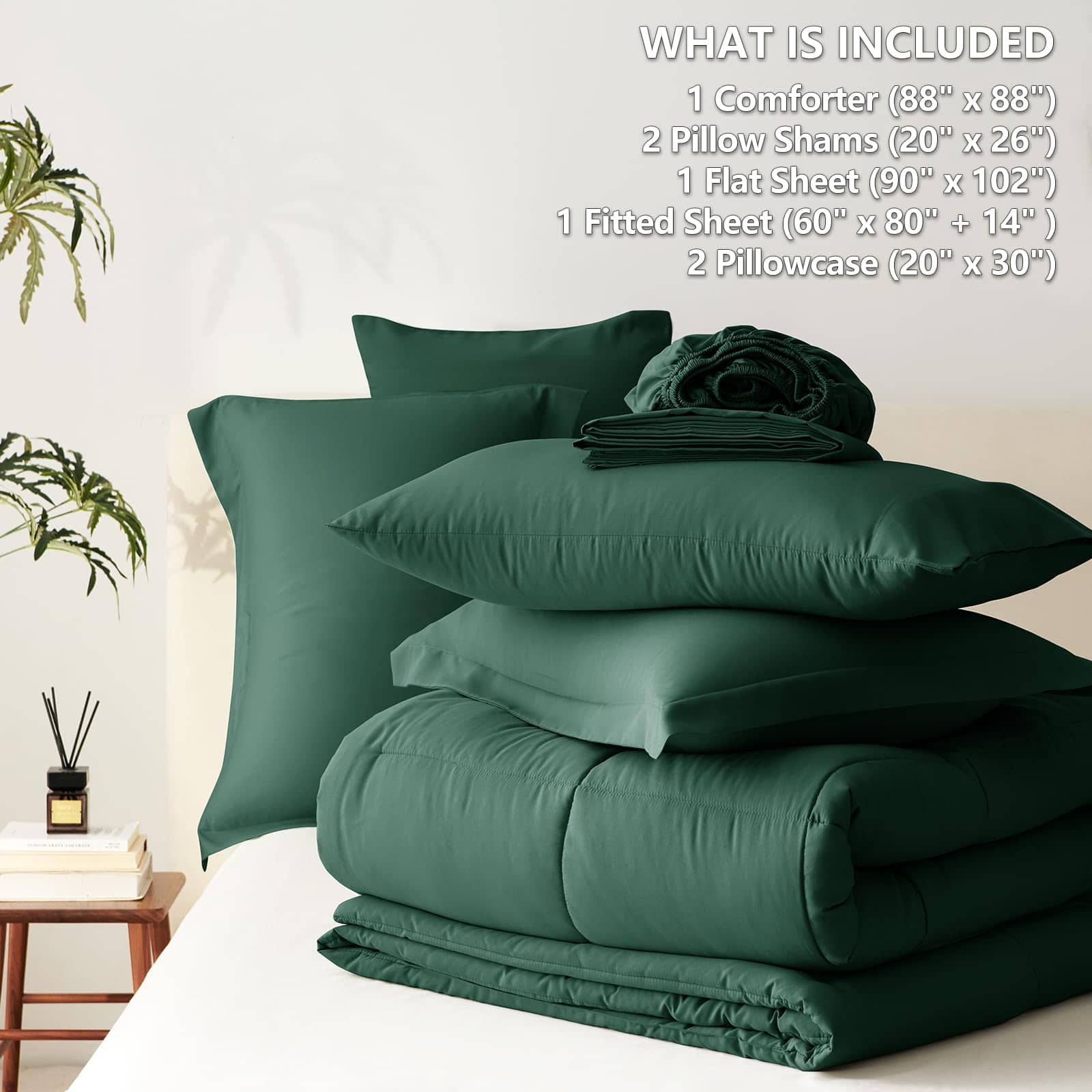 Juego de Comforter Queen Verde CozyLux 7 Piezas Juego de