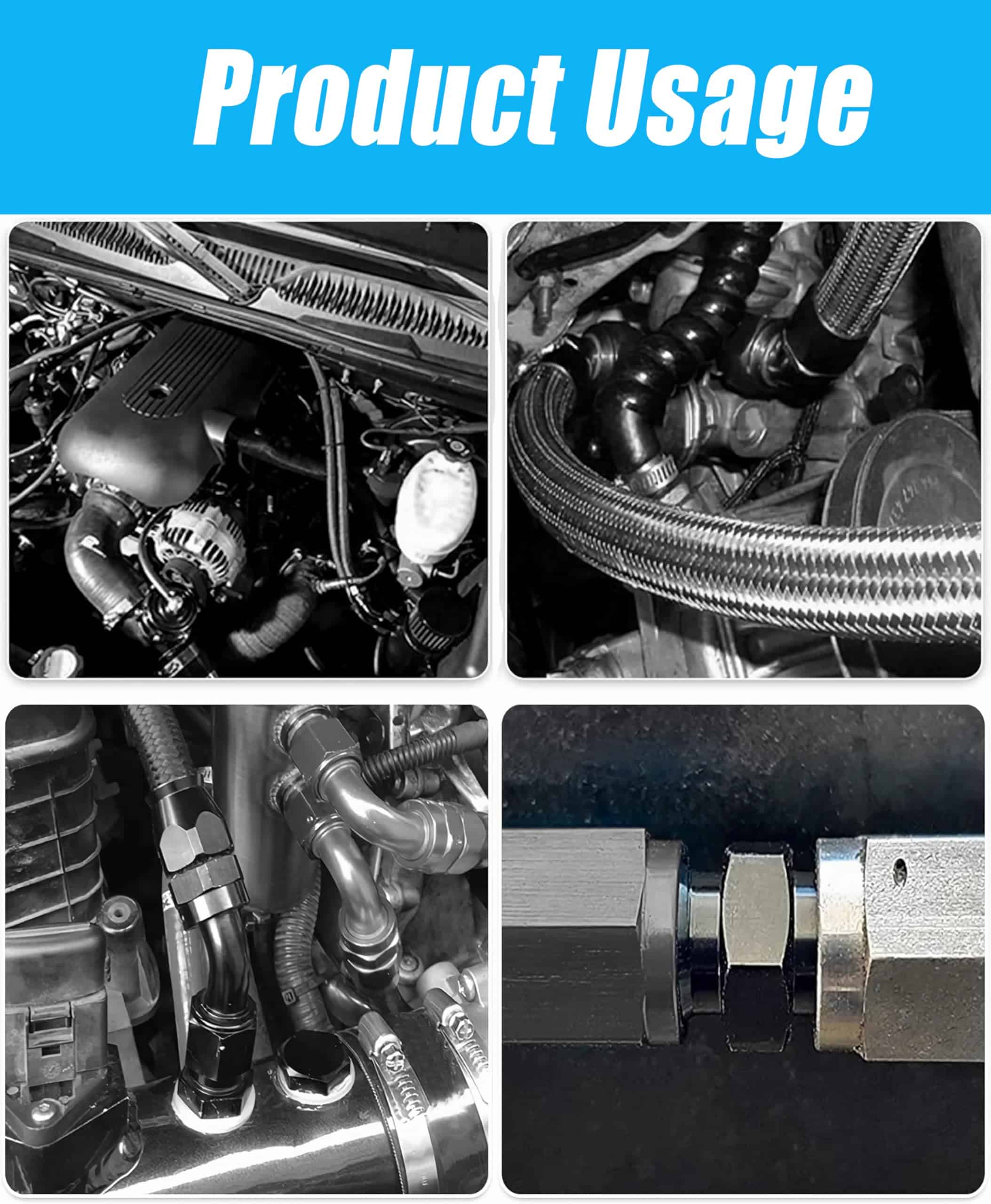 3. AMPLIAS APLICACIONES: Los conectores de manguera giratorios 6AN no son desechables y se pueden reutilizar fácilmente. Puedes usarlos para Línea de Combustible, Manguera de Aceite, Línea de Freno, Tubo de Agua, Línea de Gas, y así sucesivamente.