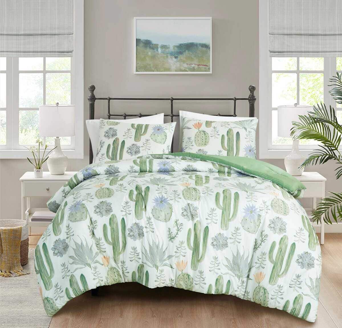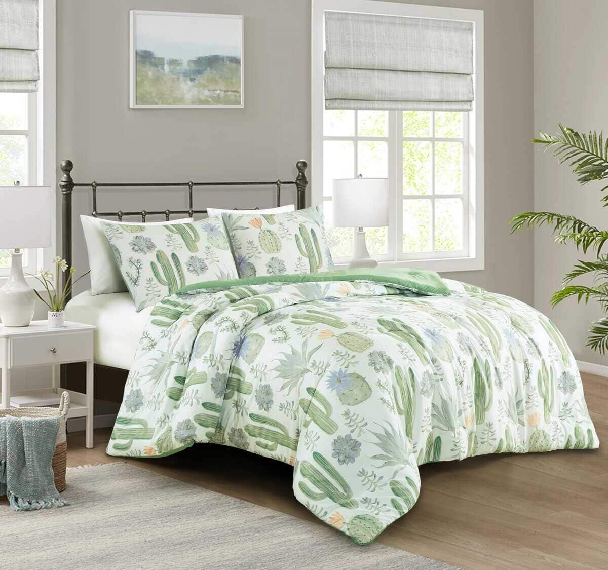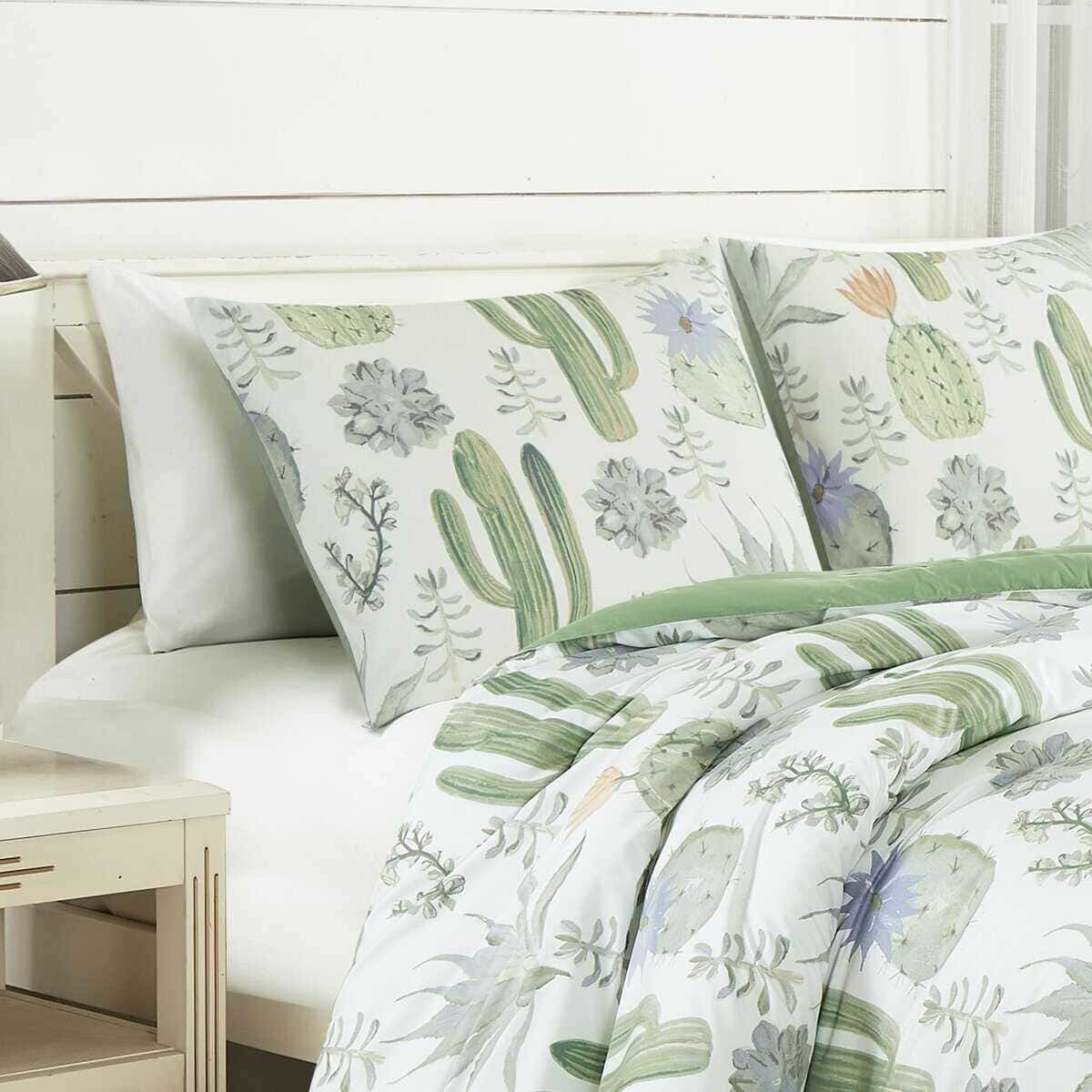 Trae la tranquilidad del desierto del suroeste a tu dormitorio con nuestro Juego de Confort Cereus. Esta hermosa y serena ambientación de desierto cuenta con un relajante patrón de cactus y suculentas en suaves tonos verdes y pasteles, creando un oasis de paz en cualquier espacio. Perfecto para amantes de la naturaleza, este juego de confort añade un toque de encanto botánico fresco a tu decoración. Mejorando aún más la sensación suroeste son sus coordinados colores vibrantes y audaces que se complementan entre sí. Con un estilo de conforter ligero pero no falto de calor, proporcionando confort durante todo el año. Una pieza de ropa de cama decorativa ideal para decoraciones de temática occidental. Hecho con 100% microfibra, el conforter es resistente a la decoloración y arrugas.