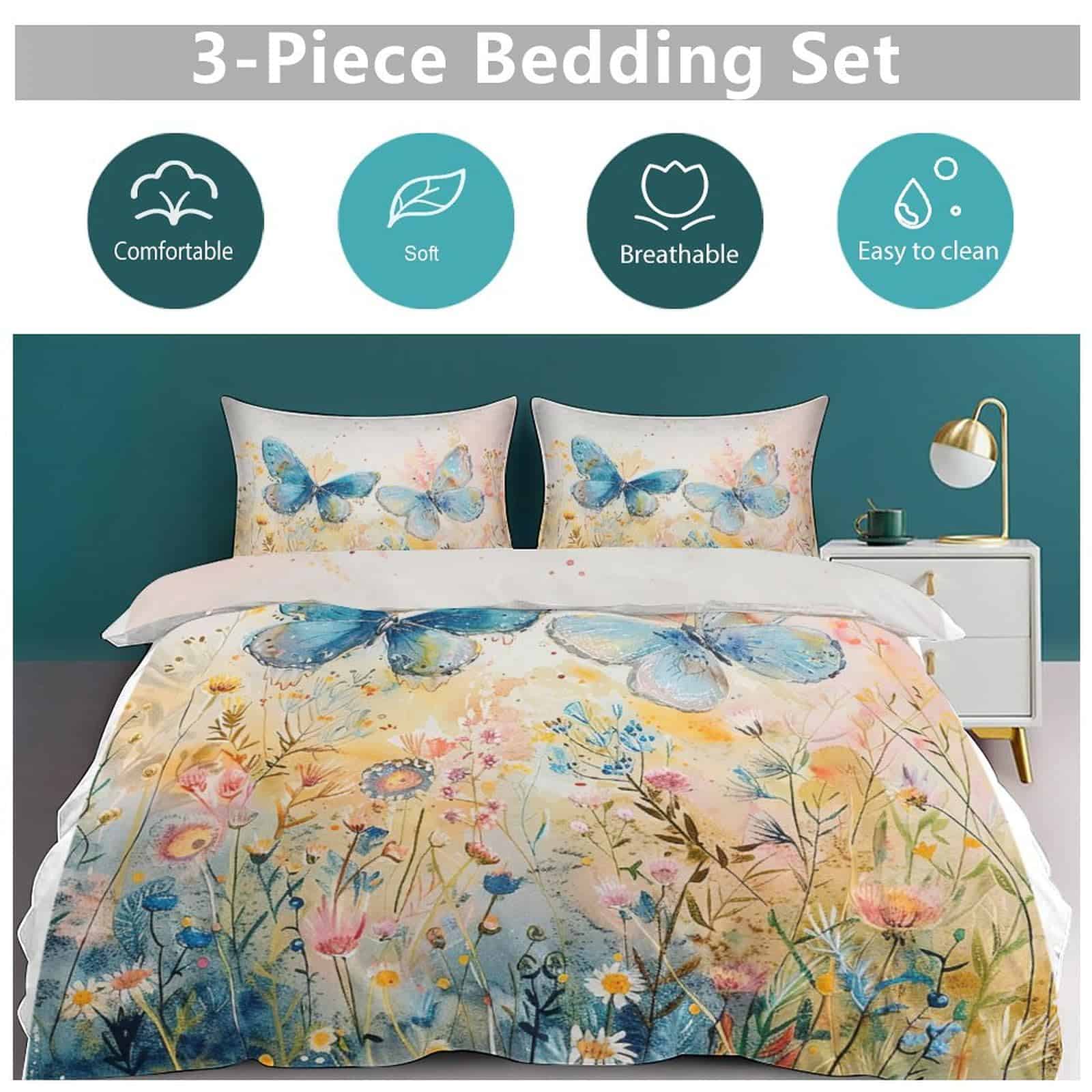 Juego de confort de mariposa azul Bogosip Set de funda de