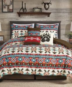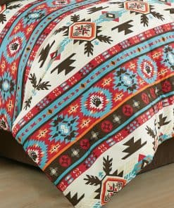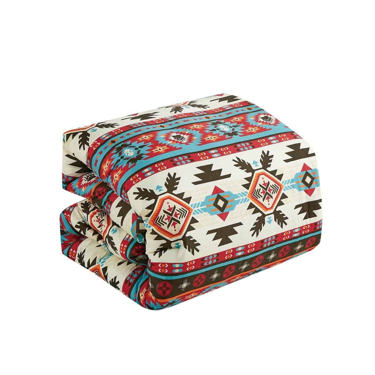 Transforma tu dormitorio en un acogedor refugio con nuestro Juego de Conforter al estilo suroeste. Este impresionante juego presenta un patrón audaz y vibrante inspirado en diseños tradicionales del suroeste, agregando un toque de encanto rústico y calidez a cualquier espacio. Los intrincados motivos geométricos en tonos terrosos de rojo, turquesa, marrón y crema evocan el espíritu de la naturaleza y brindan un punto focal visualmente impactante para tu habitación. Mejorando aún más la sensación suroeste están sus colores coordinados audaces y vibrantes que se complementan entre sí. Estilo de conforter ligero pero sin escasez de calidez, proporcionando comodidad durante todo el año. Una pieza de ropa de cama decorativa ideal para decoraciones de temática del oeste. Hecho con 100% microfibra, el conforter es resistente al desvanecimiento y a las arrugas. Incluidos están cojines decorativos a juego hechos en su propio diseño único para complementar y completar perfectamente el aspecto.