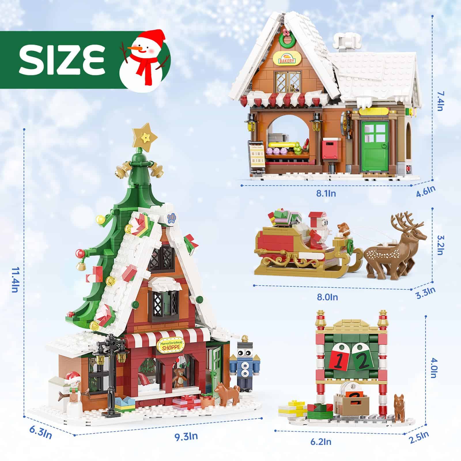 Recibirás un pueblo navideño compuesto por 1418 bloques de construcción, incluyendo el taller de Santa Claus, panadería y coche de renos de Santa Claus, calendario de adviento navideño, cascanueces para que los niños jueguen, este es un set de casa de invierno navideña que vale la pena coleccionar. La casa de pueblo navideño construida a partir de ladrillos tiene muchos elementos navideños clásicos, como árbol de navidad, Santa Claus, casa de navidad, reno, muñeco de nieve, caja de regalo, guirnalda, etc. Estos diferentes elementos navideños crean una fuerte atmósfera navideña, permitiéndote sentir la diversión de esta feliz festividad durante el proceso de construcción! Nuestras casas de Navidad son adecuadas para diferentes tipos de decoraciones de escenas de invierno, equipadas con un kit de iluminación cálido y atento, enciende las luces LED y envuélvelas alrededor de la casa, agregando una atmósfera festiva a tu escena nocturna de Navidad, y también es una gran decoración navideña para niños, adultos y familias. El set de construcción con árbol de navidad incluye instrucciones claras en papel y una hermosa caja de regalo, que se puede regalar a los niños o a cualquier persona que le gusten las fiestas. Proporcionamos un buen servicio postventa para cada cliente. Si hay algún problema con piezas faltantes, por favor contáctanos. Te responderemos en un plazo de 24 horas y te enviaremos las piezas faltantes nuevamente incondicionalmente. Así que no tienes que preocuparte por comprar algo con lo que no estés contento.