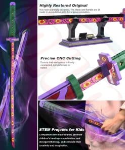 1. Altamente Restaurado Original: Esta Espada Kokushibo de Demon Slayer es la Espada Kokushibo del anime Demon Slayer, y la Espada Kokushibo ha sido cuidadosamente diseñada. La hoja y el mango se han hecho de acuerdo con la animación original, restaura perfectamente la imagen vívida de todos los elementos. Es una colección genial.