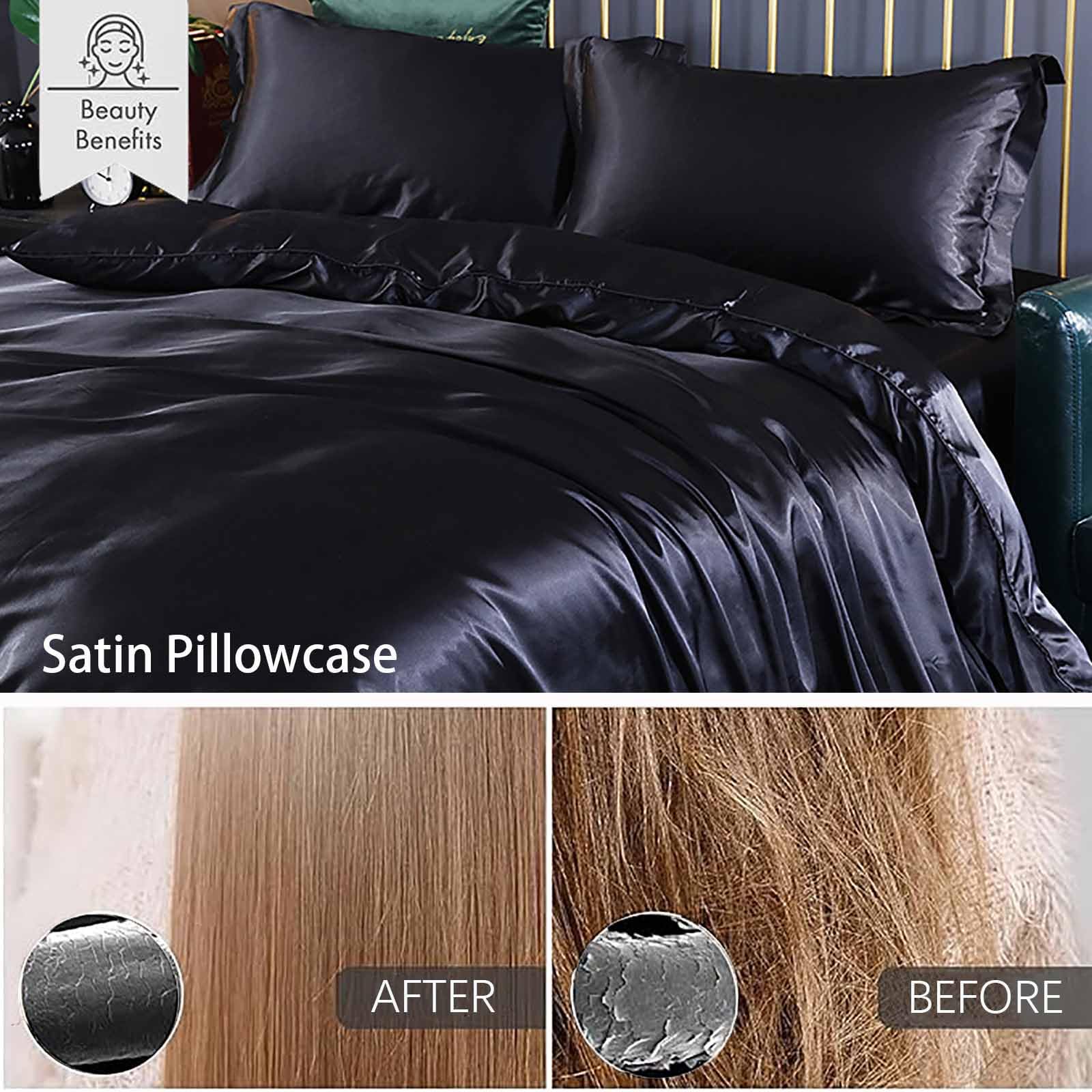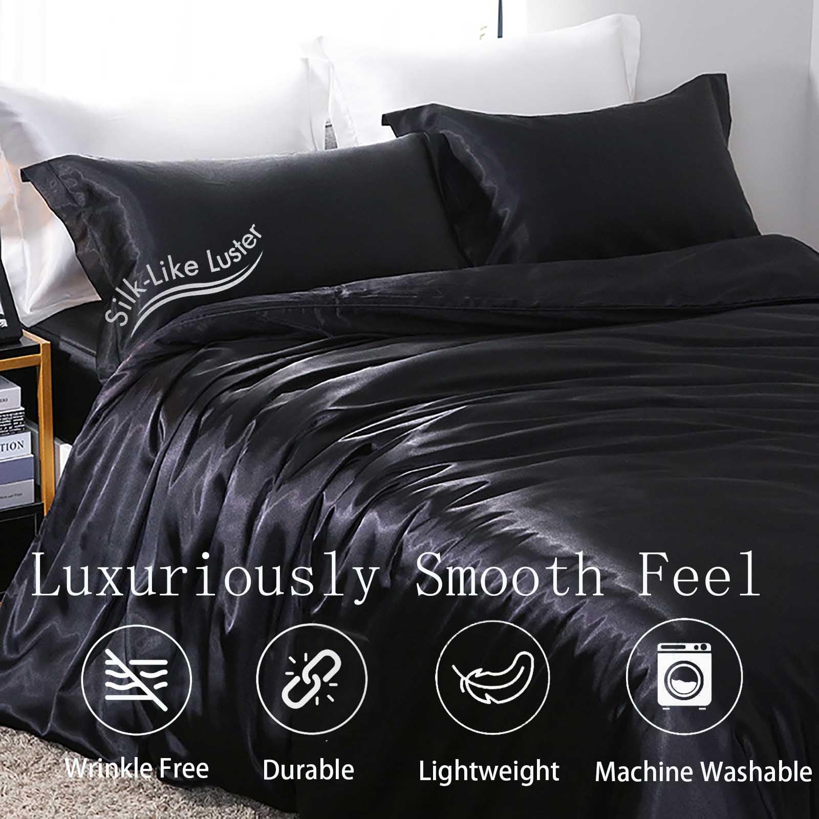1. JUEGO DE CUBIERTA DE EDREDÓN DE SATÍN – El juego de cubierta de edredón de satín Famanti está fabricado con poliéster 100% de alta calidad (tela de satín), suave, transpirable y amigable con la piel sensible. La tela similar a la seda está llena de textura extraordinaria, decora perfectamente tu habitación y crea un estilo lujoso.