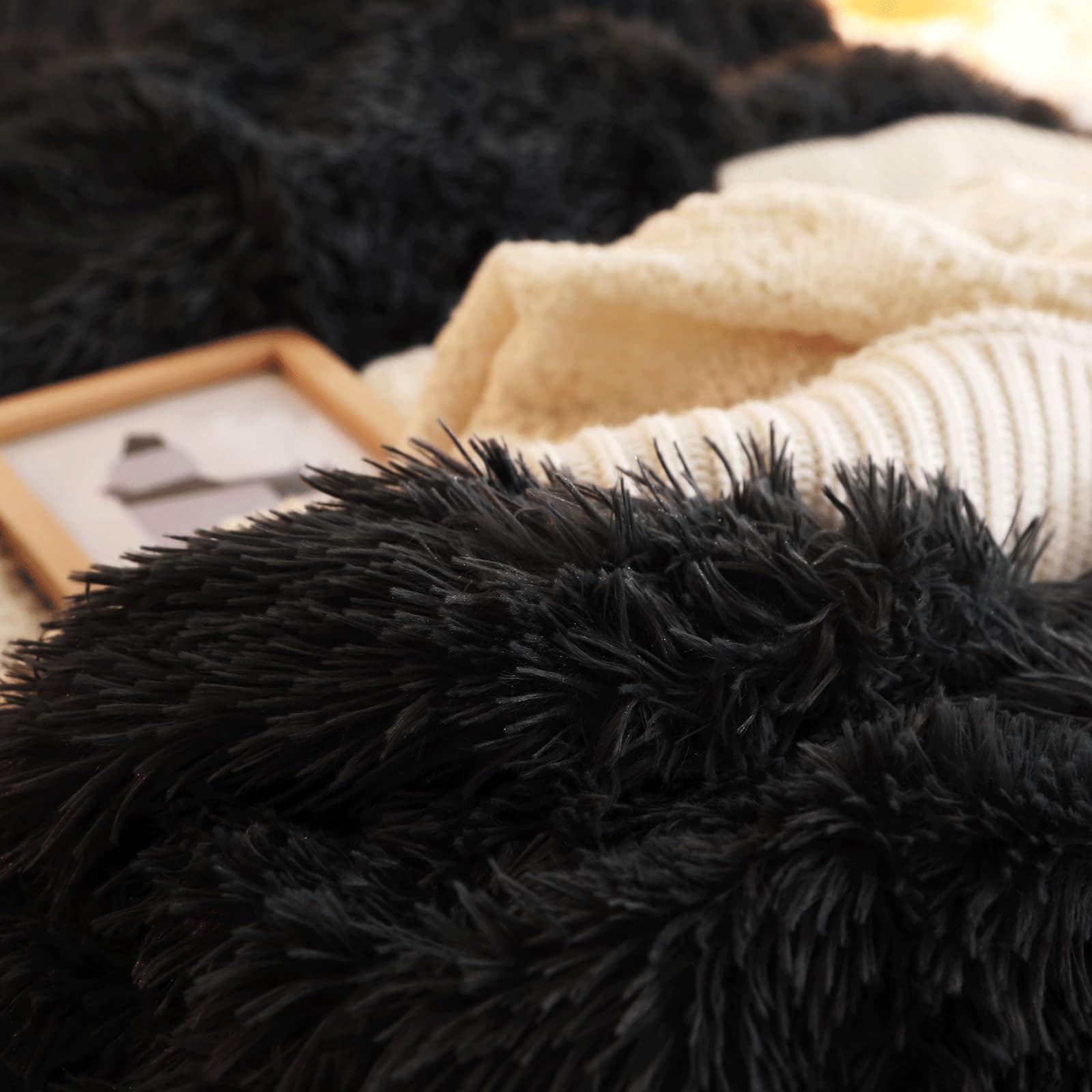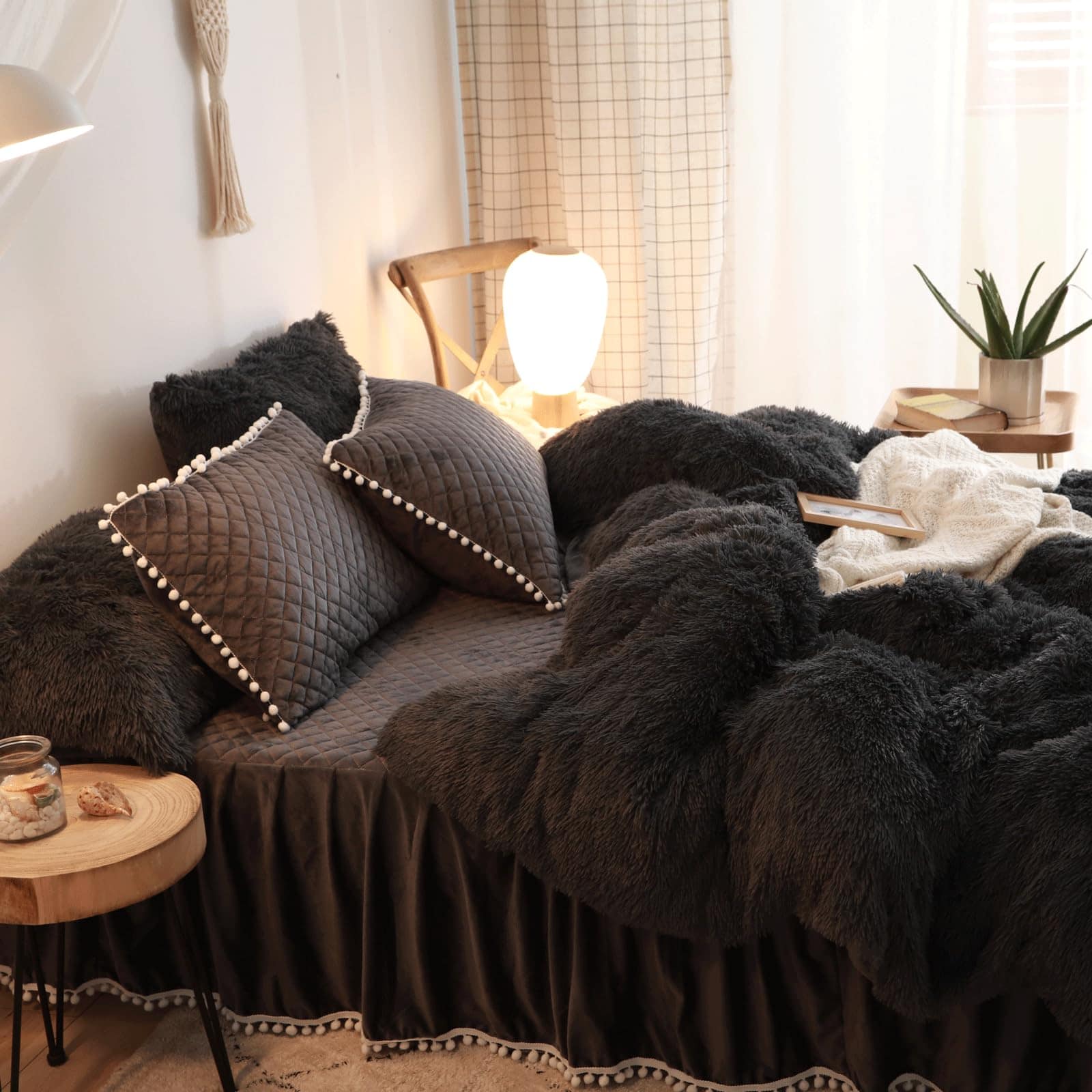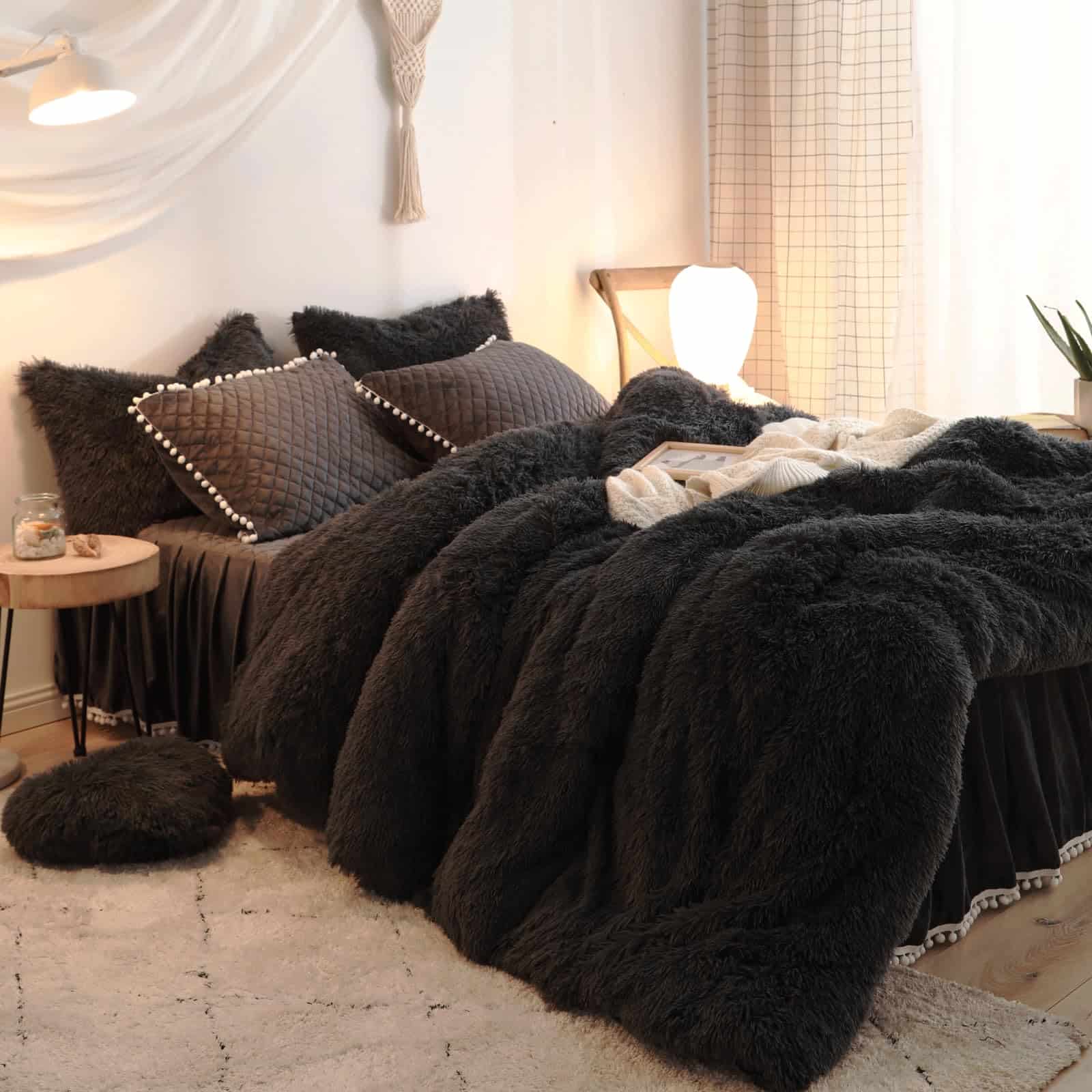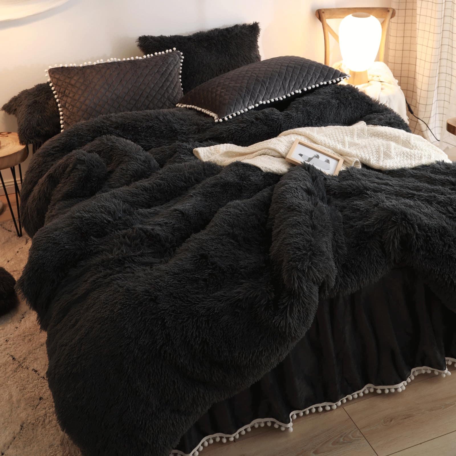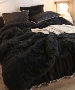Juego de cubierta de edredón HAIHUA Black Fluffy Twin |