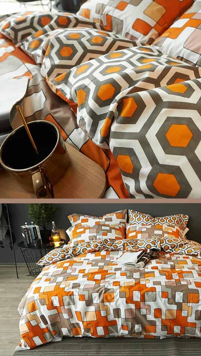 Juego de ropa de cama con cubierta de edredón de formas geométricas de estilo escandinavo moderno por el diseñador Eikei Home. Diseño de formas de triángulo inspirado en el modernismo de mediados de siglo en tonos multicolores frescos. Este juego de ropa de cama unisex combinará bien con decoraciones tradicionales y minimalistas modernas y refrescará su dormitorio. Con una suavidad y transpirabilidad increíbles durante la noche gracias al tejido de sarga 100% algodón de 250 hilos. Juego de 3 piezas en tamaño King o Full/Queen, con un tamaño generoso para adaptarse a los tamaños de colchón estándar de EE. UU., incluye una cubierta de edredón y 2 fundas de almohada con solapa y apertura estilo francés. La cubierta de edredón tiene lazos internos y cierre de botón para mantener su edredón en su lugar. Lavar a máquina en caliente, ciclo suave. Secar a baja temperatura. Usar solo blanqueador sin cloro cuando sea necesario. Planchar caliente según sea necesario.