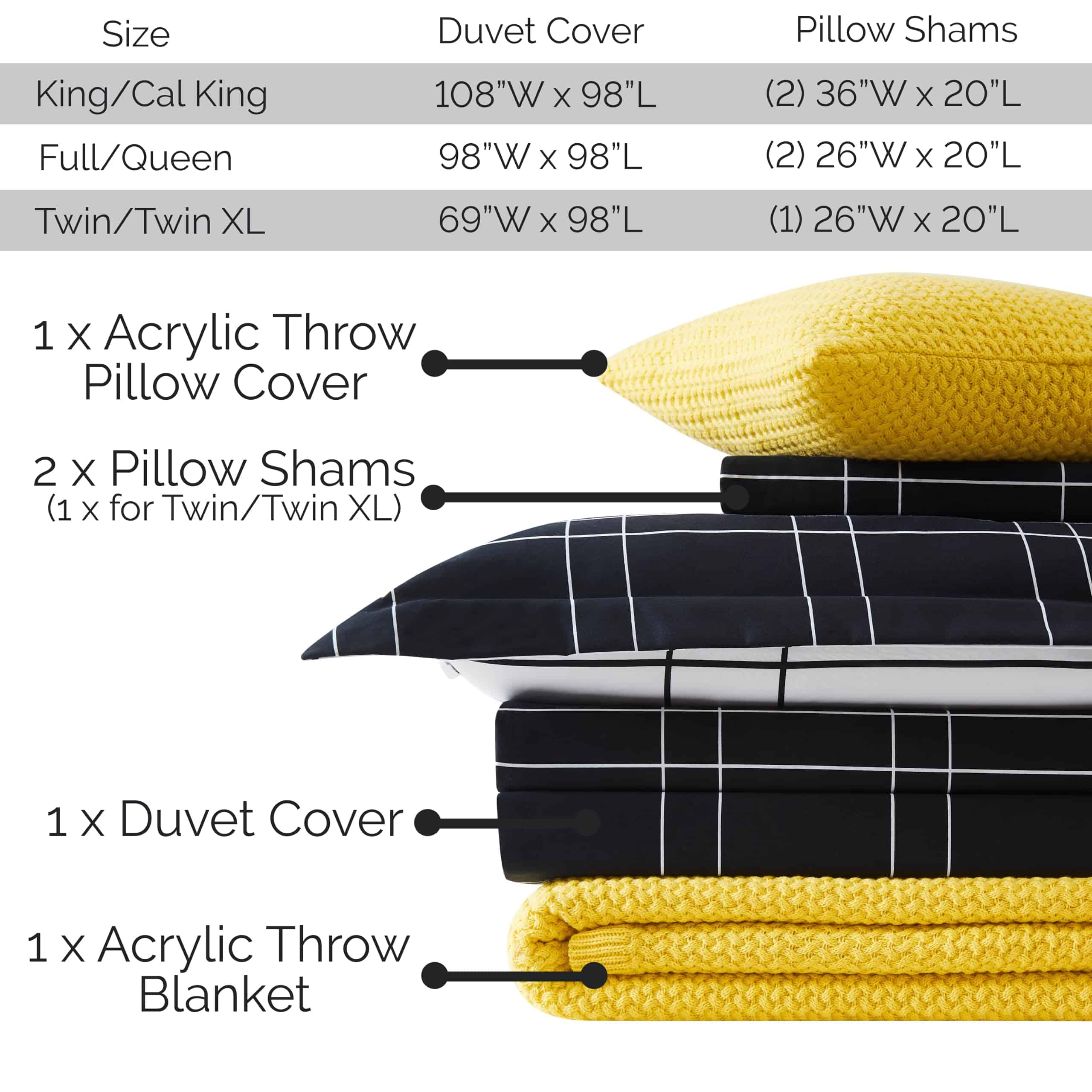 Complementa la decoración de tu hogar y estética de la habitación con este juego de cubierta de edredón de 5 piezas Queen o Full que incluye una cubierta de edredón de gran tamaño, fundas de almohada a juego, una cubierta de almohadón de color complementario y una manta para la cama o sofá. La cubierta de edredón para tamaño Queen / Full tiene un cierre de cremallera oculto y cuatro corbatas en las esquinas para mantener tu inserto de edredón Queen en su lugar. La cubierta de edredón de gran tamaño se adapta a cualquier inserto de edredón Queen o Full para un aspecto fresco y elegante para la decoración de tu dormitorio. Úsalo como edredón, colcha o cubierta de edredón para cualquier temporada. Este juego de cubierta de edredón Queen incluye la cubierta, dos fundas de almohada a juego, una manta en un color complementario y una funda de almohadón que combina con la manta. Juntos, este juego de edredón agrega un hermoso toque de color y estilo a tu espacio para dormir. Southshore Fine Linens ofrece una amplia gama de ropa de cama de tamaño Full y Queen en estilos contemporáneos que incluyen decoración boho, decoración moderna, de granja, floral, victoriana, bohemia y decoración preppy para el hogar. Desde juegos de sábanas Queen hasta edredones de tamaño Full, comforters y cubrecamas, Southshore tiene tu ropa de cama cubierta con estilo.