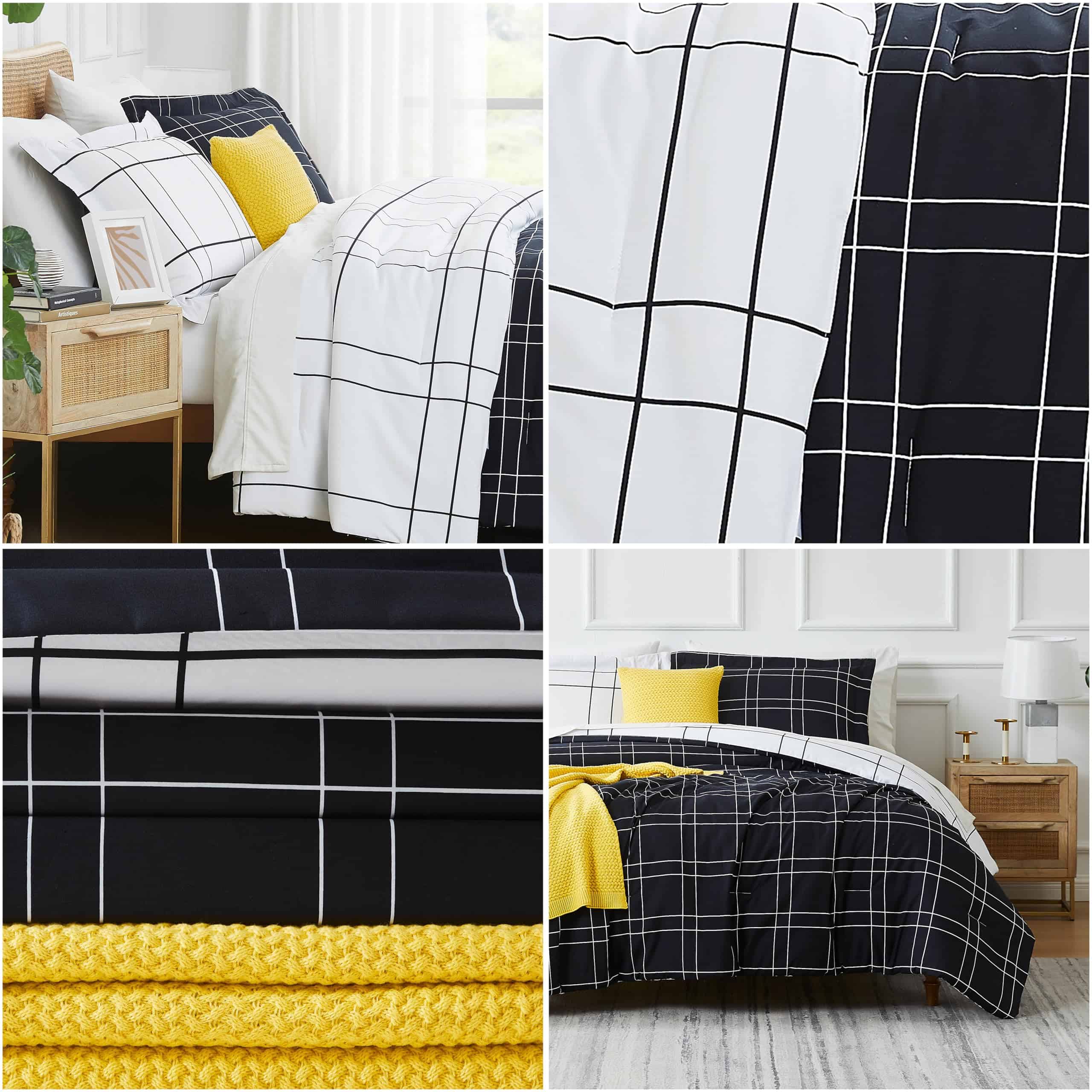 Juego de Cubierta de Edredón Reversible Blanco y Negro 5