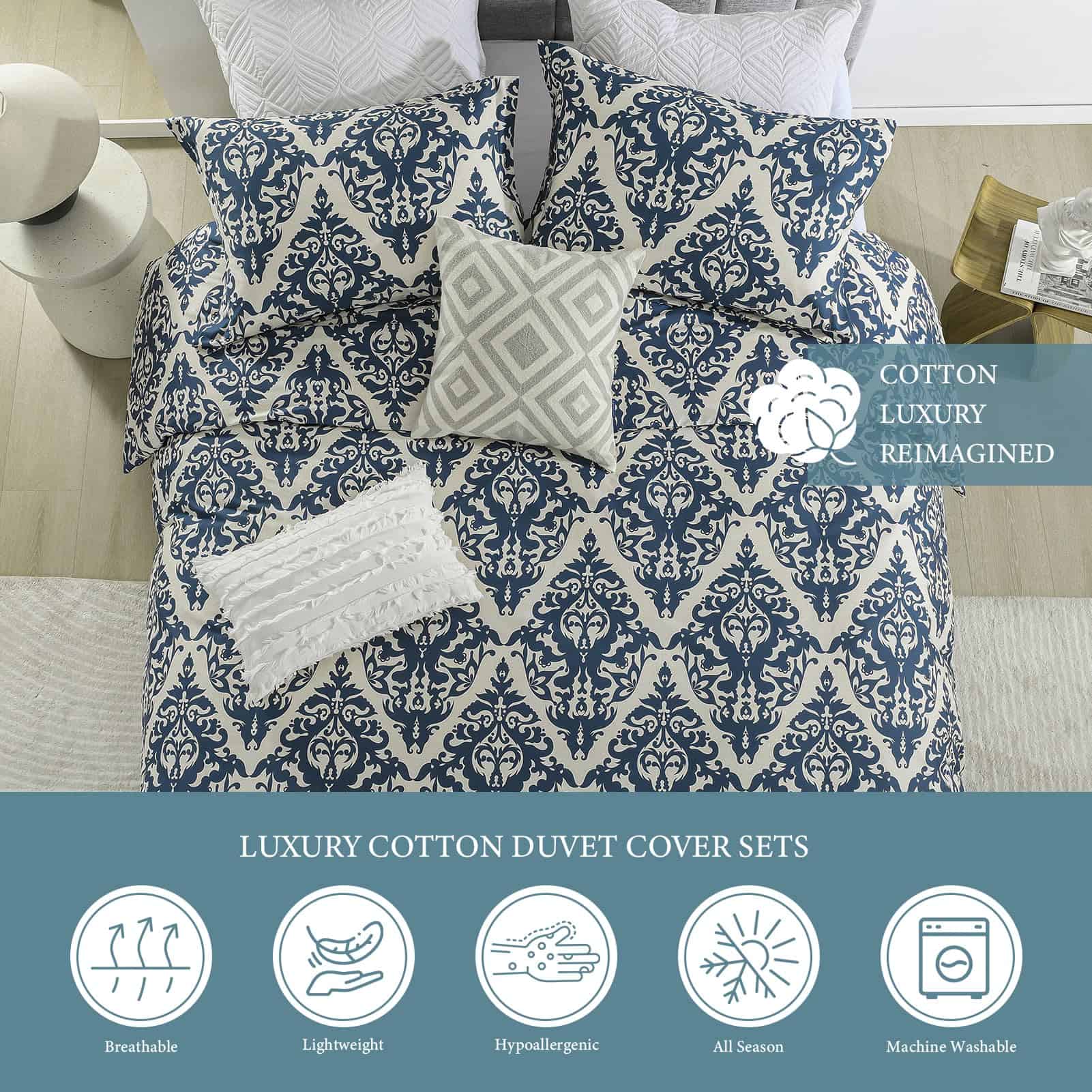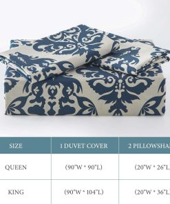 2. ELEGANTE PATRÓN BOHO IMPRESO – El juego de cubierta de edredón de 3 piezas utiliza curvas atractivas y formas geométricas sofisticadas para diseñar un patrón damasco, brindándote una decoración lujosa y llamativa para tu dormitorio. El clásico color azul marino y crema beige, elegante y atemporal, complementará virtualmente cualquier paleta de colores del dormitorio, especialmente los colores cálidos.
