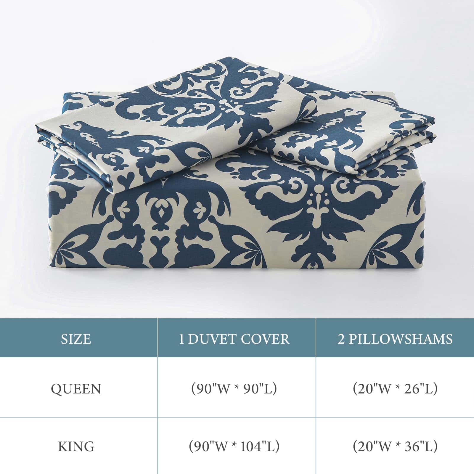 1. QUÉ RECIBES – Este juego de cubierta de edredón de algodón tamaño queen incluye 1 cubierta de edredón (90″ x 90″) y 2 fundas de almohada (20″ x 26″). ¡Sin edredón!