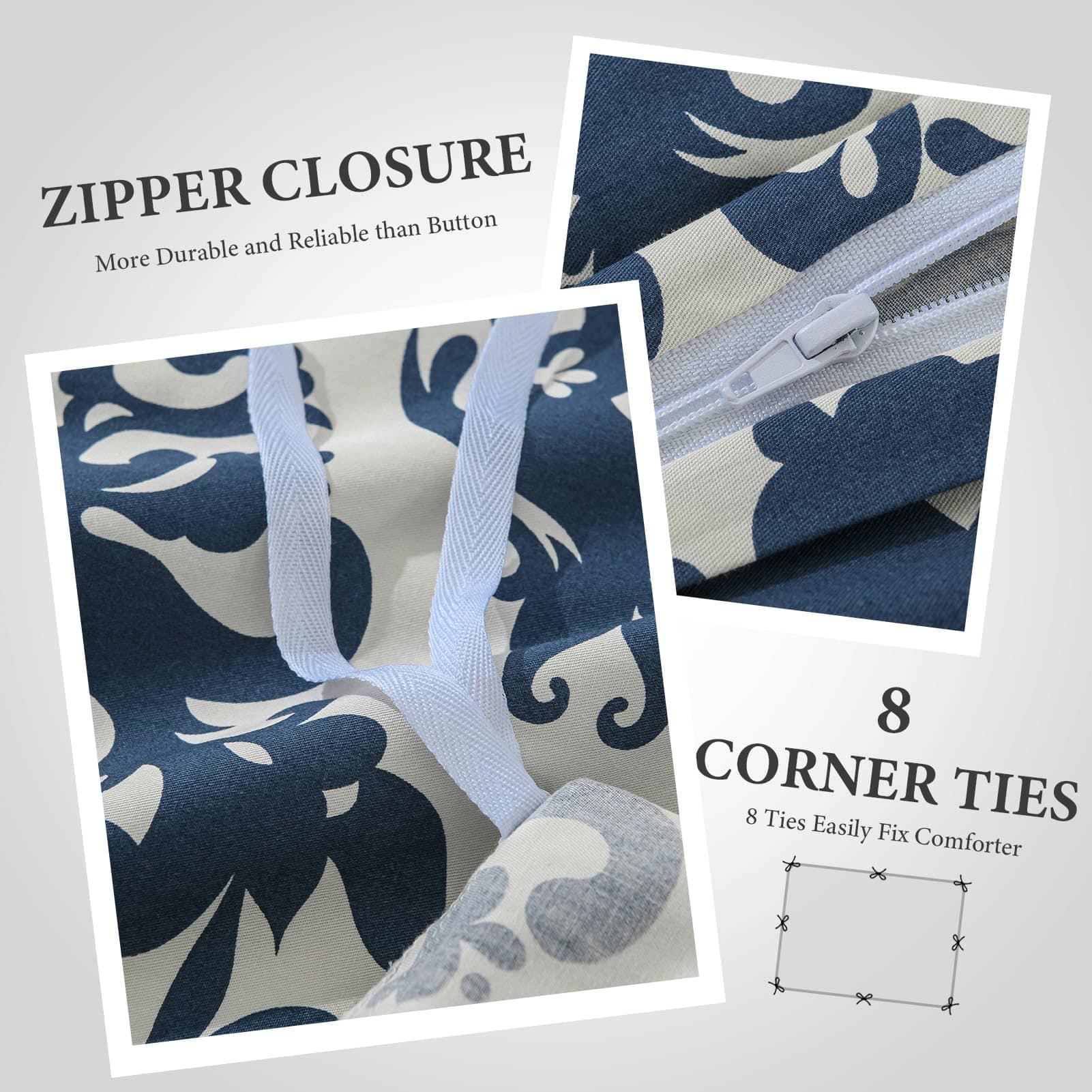 5. DETALLES PENSADOS – El cierre de cremallera oculto del juego de cubierta de edredón facilita insertar tu edredón en la cubierta y lo mantiene seguro sin moverse ni agruparse. Además, la cubierta de edredón cuenta con 8 lazos que mantienen el edredón en su lugar.