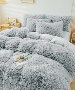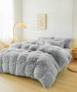 Juego de Cubrecama Gris Fluffy ERLOXO Queen – Juego de Ropa