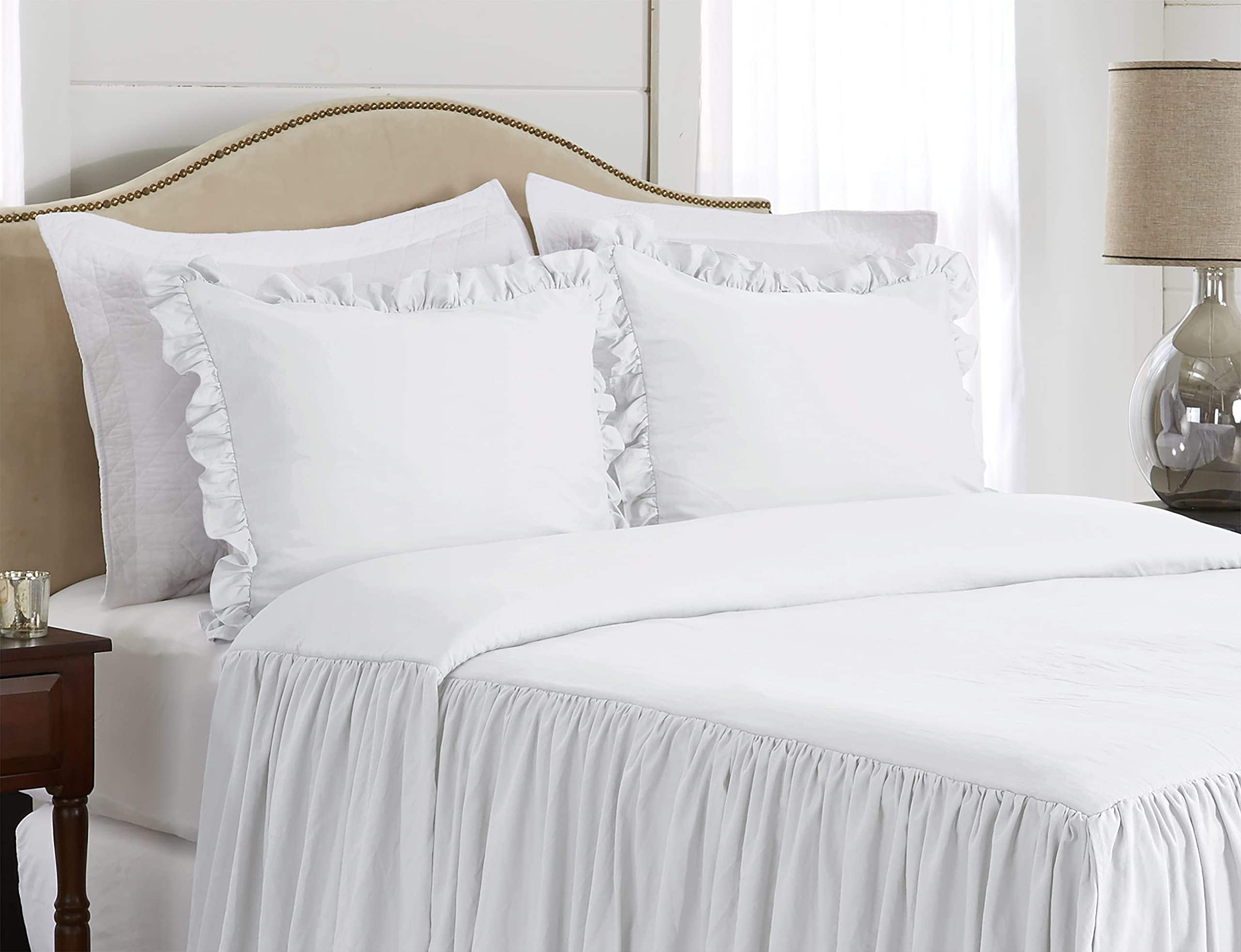 Set de ropa de cama elegante y bohemio con cubrecama y fundas de almohada en blanco brillante. Fabricado con microfibra cepillada lavada. Lavable a máquina. Secar en ciclo bajo. Con apertura en la parte trasera de las fundas de almohada para insertar y quitar la almohada fácilmente. La cubrecama recogida incluye una caída de 30″. Encuentra accesorios a juego en nuestra tienda, como juegos de cama coordinados, cojines decorativos, cortinas de baño, paneles de ventanas, faldas de cama, almohadas corporales y más.