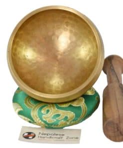 Este set incluye un Cuenco Cantor tibetano para meditación hecho a mano. Perfecto para crear un ambiente de calma emocional y sanación. Ideal para viajar. El sonido generado por este Cuenco Cantor promueve la sanación de desórdenes de estrés, dolor y depresión. Peso del cuenco cantor: 200g. Diámetro: 10cm. Altura: 6cm. Grosor: 2mm. Material: Latón y 7 metales auspiciosos. Peso total de todos los elementos: 350g.