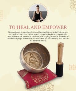 Características: Diseño Exquisito: El impresionante diseño inspirado en el Loto de Buda – Beige y el color cautivador agregan belleza y serenidad a tu espacio de meditación. Tamaño Perfecto: Con un compacto diámetro de 4 pulgadas y profundidad de 2.25 pulgadas, es fácil de sostener y portátil para usar en cualquier lugar. Set Completo: Incluye un palo percutor para crear sonidos similares a campanas y un hermoso cojín de brocado para apoyo cómodo. Creación de Tonos Pulsantes: Golpea el cuenco y circula el borde en un movimiento circular para evocar vibraciones resonantes y un sonido calmante. Alivio del Estrés y Profunda Relajación: Alivia el estrés, la tensión e induce la relajación profunda para tu mente, cuerpo y alma.