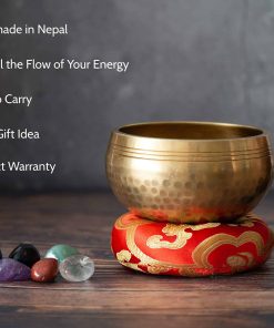 FÁCIL DE TOCARÚTIL PARA Reducción del Estrés y la Ansiedad Relajación Profunda Músicos y Profesores Sanación Holística y Práctica de Reiki Sanación Espiritual Auto-Hipnosis Decoración del Hogar Regalo Los cuencos cantores tradicionales están hechos de 7 metales y también se conocen como Cuenco del Himalaya , campanas , Cuenco de Chimita , cuenco del Tíbet , cuenco de canto y otros . Hecho a mano en Nepal por artesanos locales de comunidades desfavorecidas. El cuenco auténtico se puede utilizar para varios propósitos. Estos cuencos son excelentes regalos de yoga para hombres y mujeres, regalo de meditación , regalo espiritual y se pueden utilizar para la decoración del hogar y la decoración de habitaciones también. Son perfectos para cualquier ocasión y son regalos pensativos. Son regalos maravillosos para el día del cumpleaños , el día de la madre, el día del padre y la Navidad, también un regalo de atención plena. Estos Cuencos Cantores Tibetanos son populares entre los practicantes del Zen y los sanadores para la meditación y la oración, y a menudo utilizan el cuenco cantor para la limpieza. Puede realizar Reiki con los cuencos cantores. Los sanadores se enfocan en los chakras y los incorporan con Pranayama y varios yoga nidra para ayudar a aliviar la ansiedad y los ataques de pánico. Vienen en tamaños variados y los cuencos de sonido de color negro, cuenco cantor pequeño y cuenco de 4 pulgadas son los más populares en todo el mundo. Cada cuenco también tiene un tono único o nota de sonido. Nota Do Chakra Raíz (Muladhara) Nota Re Chakra Naval (Swadistana) Nota Mi Plexo Solar Nota Fa Chakra del Corazón Nota Sol Chakra de la Garganta Nota La Chakra del Tercer Ojo Nota Si Chakra de la Corona Haz clic en el botón Agregar al Carrito para obtener hoy auténtico Juego de Cuenco Tibetano.