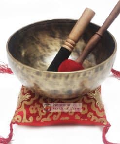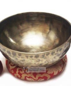 Cuenco Tibetano de Meditación de 10 Pulgadas de Alta Calidad: – Este Cuenco Tibetano de Meditación de 10 Pulgadas de alta calidad está hecho de siete metales, incluyendo cobre y plata. Este cuenco de canto fue martilleado a mano. Este cuenco de canto budista tibetano martilleado a mano fue hecho a mano en Nepal. Pátina de bronce clásica con manchas y remolinos oscuros. Este cuenco está literalmente cubierto de marcas auténticas martilleadas a mano. Este cuenco PREMIUM canta MUY fácilmente. Gran sostenimiento durará y durará. Tono medio completo con un dulce zumbido alto constante. Encanto MUY distintivo. Esta publicación es para un cuenco antiguo, genuinamente hecho a mano y auténtico. Un mazo gratuito y un cojín de cuenco de canto (color, diseño y color pueden variar) están incluidos con este cuenco. Excelente cantor; excelente y pacífico sonido zumbador. El sonido alojado no hace justicia al cuenco. Adecuado para cualquier uso profesional, incluyendo grabaciones de sonido, proyectos de sonido, yoga, reiki y más. Este cuenco de canto viene con un mazo (también conocido como mazo, puja). DESCRIPCIÓN DEL ARTÍCULO: Peso del cuenco de canto :1375g Ancho del cuenco de canto (Diámetro) : 9 pulgadas Altura del cuenco de canto : 4 pulgadas Grosor del cuenco de canto : 4 mm Material del cuenco de canto : Latón y 7 metales auspiciosos Elementos de esta publicación : Cuenco, mazo y cojín Peso total de todos los artículos : 1600g CÓMO TOCAR EL CUENCO DE CANTO: 1) Coloque (no toque/sujete el cuenco con los dedos, puede amortiguar la vibración/sonido) el cuenco en la palma de una de sus manos. 2) Deslice/rote el mazo firmemente alrededor del borde del cuenco con una presión uniforme y velocidad uniforme para producir vibración/sonido. 3) La vibración y el sonido también se pueden producir simplemente golpeando el cuenco con el mazo. Otra opción es «tintinear» o «golpear» los cuencos. Este es un método sencillo que consiste en golpear el cuenco con un mazo de madera o acolchado.