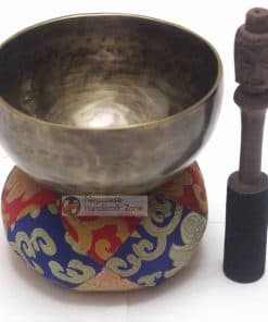 Cuenco de Meditación Tibetano de 5.5 pulgadas de Alta Calidad: – Este cuenco de meditación tibetano de 5.5 pulgadas de alta calidad está hecho de siete metales, incluyendo cobre y plata. Este cuenco de canto fue martillado a mano. Este cuenco de canto budista tibetano martillado a mano fue hecho a mano en Nepal. Patina de bronce clásico con manchas y remolinos oscuros. Este cuenco está literalmente cubierto de marcas auténticas martilladas a mano. Este cuenco PREMIUM canta muy fácilmente. Gran sustentación que durará y durará. Tono medio completo con un constante zumbido alto y dulce. Encanto MUY distintivo. Esta publicación es para un cuenco antiguo, genuinamente hecho a mano y auténtico. Se incluye un mazo gratuito y un cojín de cuenco de canto (el color, el diseño y el color pueden variar) con este cuenco. Excelente cantante; sonido de zumbido excelente y tranquilo. El sonido alojado no hace justicia al cuenco. Adecuado para cualquier uso profesional, incluyendo grabación de sonido, proyectos de sonido, yoga, reiki y más. Este cuenco de canto viene con un mazo (también conocido como maza, puja). DESCRIPCIÓN DEL ARTÍCULO: Peso del cuenco de canto: 550gms Ancho del cuenco de canto (Diámetro): 5.5 pulgadas. Altura del cuenco de canto: 3 pulgadas Grosor del cuenco de canto: 3mm. Material del cuenco de canto: Latón y 7 metales auspiciosos. Artículos de esta publicación: Cuenco, mazo y cojín. Peso total de todos los artículos: 700gms