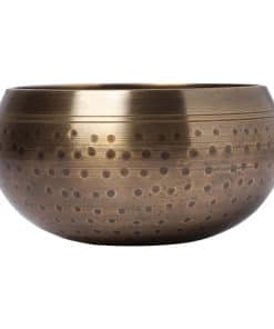 Los cuencos tibetanos KPAVIR se han utilizado para sanación, meditación y prácticas religiosas en India, Tíbet y otras partes de Asia durante siglos. En la temporada festiva de Diwali, Acción de Gracias y Navidad, haga un regalo considerado a los creyentes del budismo. La estatua de Buda, los cuencos tibetanos y las pinturas de Thangka y Mandala son regalos ideales. El Cuenco Tibetano Budista Musical de Metal Hecho a Mano de 5″ está diseñado para ser una decoración que agregará al ambiente de una habitación cuando no se esté utilizando. El cuenco está construido a mano con metal de latón y luego es completamente martillado por un artesano calificado. El color del cuenco es dorado. Midiendo 5 pulgadas de diámetro por 2.75 pulgadas de altura, el Cuenco Tibetano Budista Musical de Metal Hecho a Mano de 5″ produce una calidad tonal y resonancia de grado medio y satisfará la mayoría de las necesidades con la calidad de su sonido. El cuenco pesa 650 gramos y viene con un palo y cojín de cuero de madera para tocar. Este palo está modificado a partir de diseños tradicionales, para que incluso un principiante pueda usarlo para producir tonos relajantes con el cuenco de inmediato. Un cojín en telas tradicionales tibetanas acompaña el set. El cojín está diseñado para combinar con el cuenco; sin embargo, los colores pueden variar. Agregue algo de elegancia asiática exótica a su decoración y benefíciese del uso de un cuenco tibetano como parte de su práctica de yoga, meditación o rituales de sanación. ¡Ordene el Cuenco Tibetano Budista Musical de Metal Hecho a Mano de 5″ hoy!