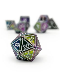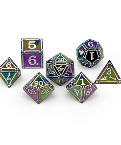 Comienza un viaje a través de reinos desconocidos con nuestro exquisito Juego de 7 Dados de Metal, meticulosamente diseñado para elevar tu experiencia de juego a nuevas alturas. Fabricados en aleación de metal sólido, estos dados no son solo herramientas de azar sino compañeros a través del laberinto de tu imaginación.