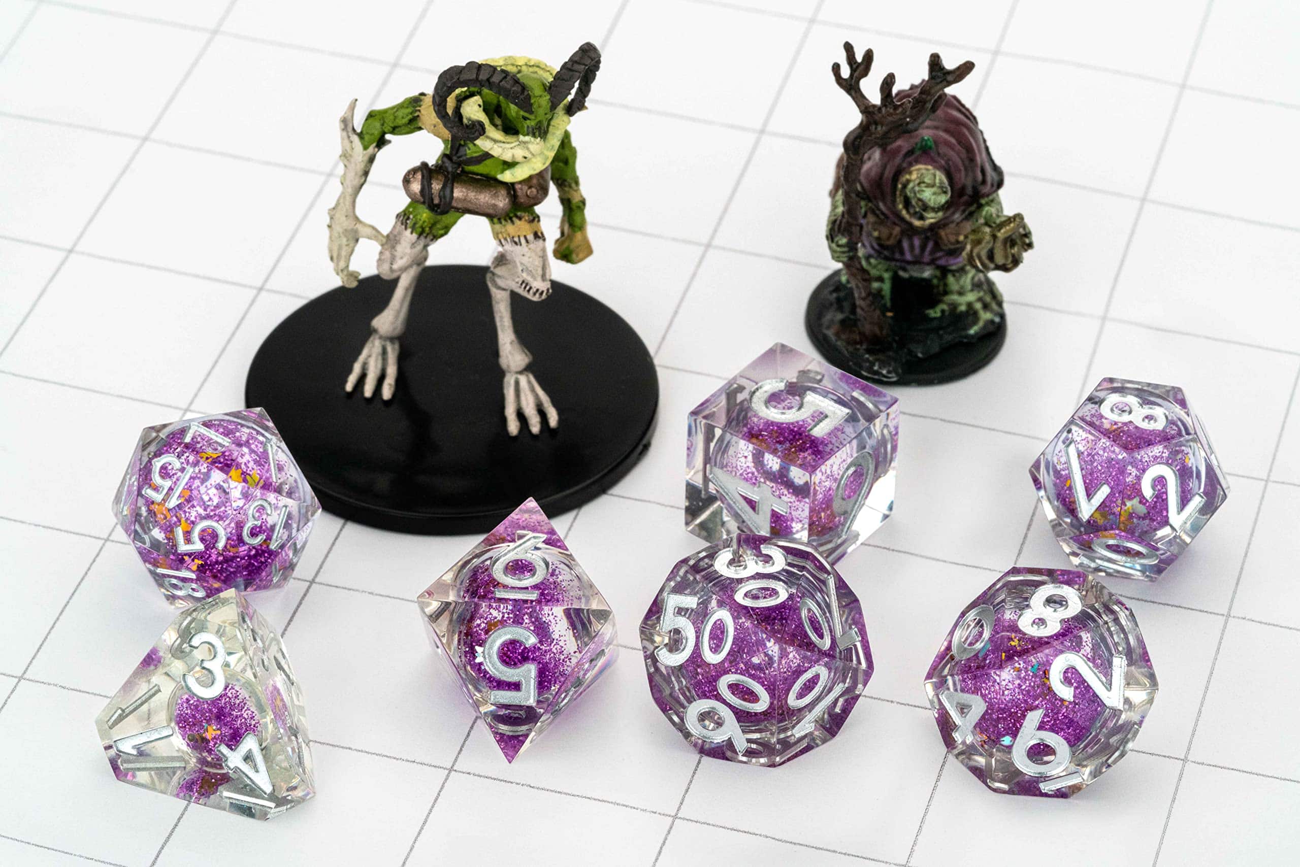 Dados Metálicos de Juegos Elaborados a Mano, con Bordes Afilados, de Núcleo Líquido Elixir para Dungeons and Dragons. MDG se inició en 2013 en EE. UU. por un entusiasta de los dados de 22 años en Indiana que estaba harto de no tener acceso a dados de metal de calidad. MDG se enorgullece de hacer productos de la más alta calidad con un toque personal y garantía de satisfacción del 100%. Un buen juego de dados puede durar toda la vida, no conformes con menos, elige calidad y personalidad!