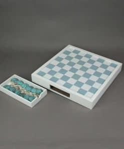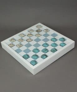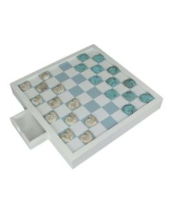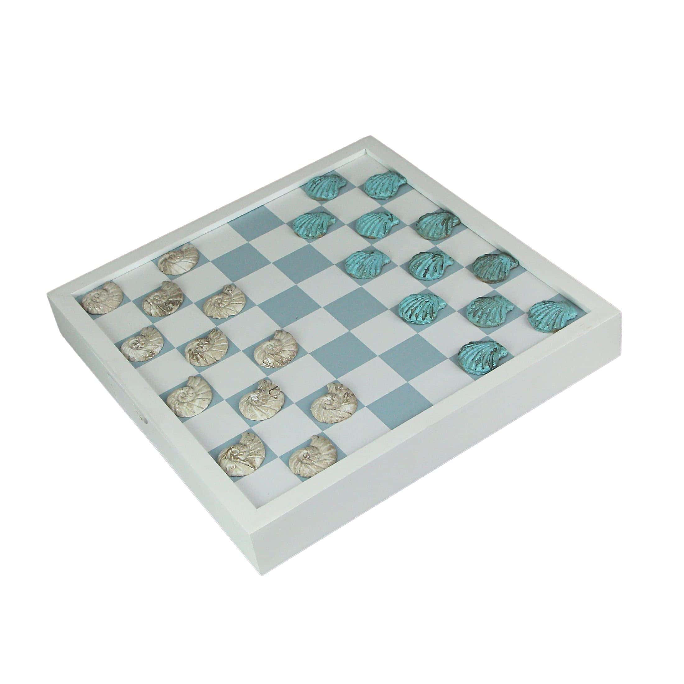 El clásico juego de damas adquiere un aspecto costero con este set decorativo que presenta vieiras y conchas de nautilus como las piezas de juego en un tablero de damas de madera con cuadros azules y blancos costeros. Este set de 13 pulgadas de largo, 13 pulgadas de ancho, 1.75 pulgadas de alto trae la diversión a una exhibición funcional como una pieza de acento y un juego jugable que puedes jugar en cualquier momento y lugar. Es perfecto para traer una sensación de nostalgia a cualquier hogar con temática costera, de playa o náutica y una gran adición a una sala de juegos.