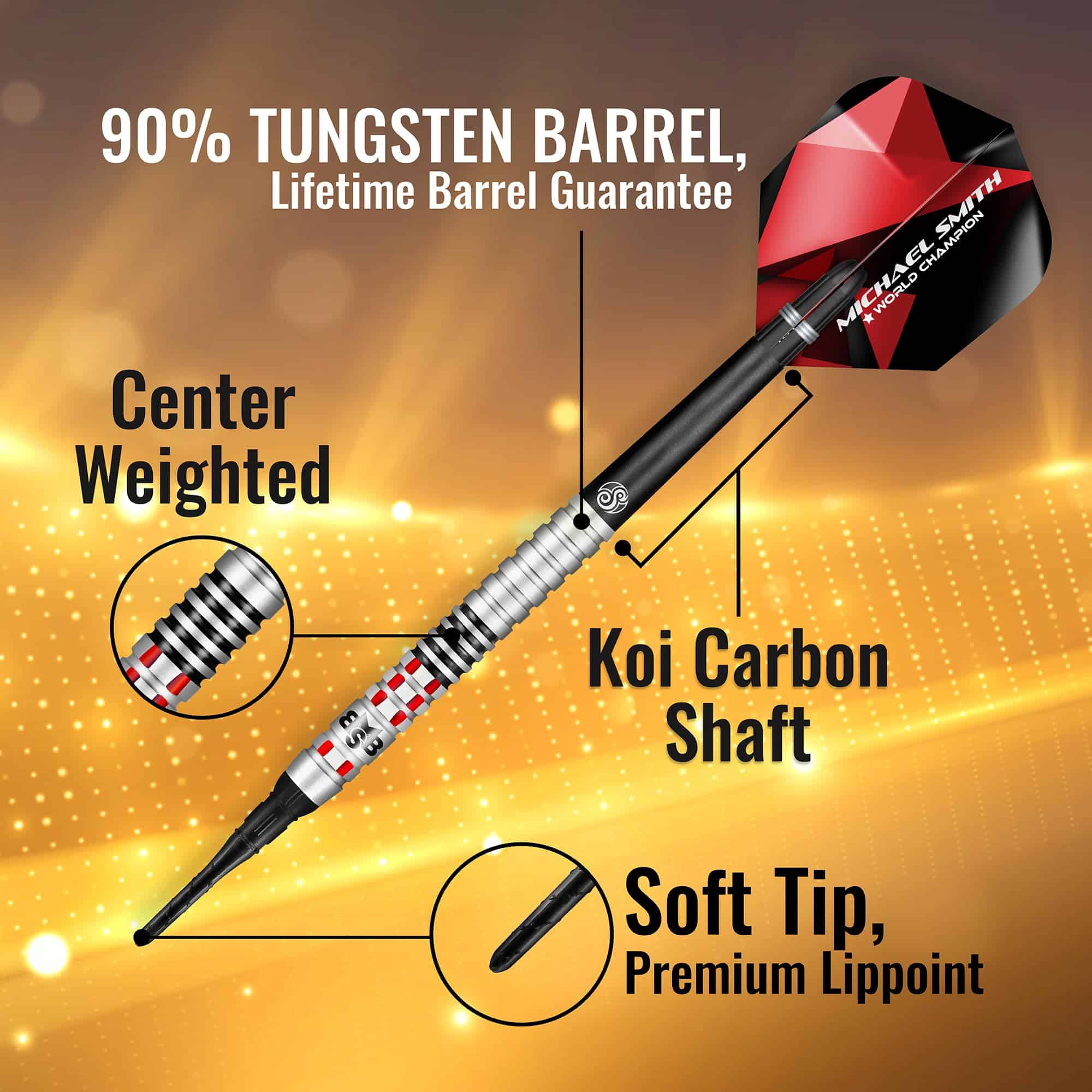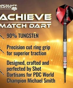 Shot! Darts Soft Tip Michael Smith Achieve es un juego de dardos de punta suave de alto rendimiento que te permitirá refinar cada lanzamiento y convertirte en un maestro del juego. El barril de tungsteno de 90% de calidad, con su concepto de mecanizado de precisión y atractivo visual mejorado, convierte este set de dardos en una verdadera potencia de rendimiento y estilo. Disfruta de estos dardos en torneos de dardos, en juegos en el bar, casa, oficina y salas de juegos.