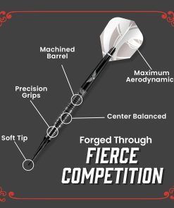 Conjunto de dardos profesional de alta calidad para todos los niveles de habilidad. Este juego de dardos ha sido diseñado con un agarre seguro para principiantes pero con la durabilidad para profesionales del dardo, por lo que ya seas un jugador experimentado en dardos o si eres nuevo en el juego, estos dardos cumplirán con tus expectativas. Nuestros dardos tienen zonas de agarre claramente definidas, para respaldar un potencial de puntuación alto y proporcionar puntos de referencia fijos a lo largo del barril que añadirán consistencia a tu lanzamiento. Diseñado para jugadores que quieren mejorar su juego de dardos, este juego de dardos está diseñado para una máxima aerodinámica y agrupación ajustada, diseñado en nuestra fábrica, refinado por software CAD de vanguardia y luego probado por jugadores de dardos para una precisión milimétrica.