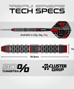 Para mejorar aún más tu juego, la Serie Cypher viene equipada con ejes Vecta cortos y Plumas de Dardos Estándar Prism Delta. Los ejes vecta cortos están diseñados para aumentar la estabilidad y reducir la resistencia, permitiendo un lanzamiento más suave y rápido. Las Plumas de Dardos Estándar Prism Delta, conocidas por su durabilidad y estabilidad en el vuelo, ofrecen precisión y control, asegurando que tus dardos sigan fielmente su trayectoria.