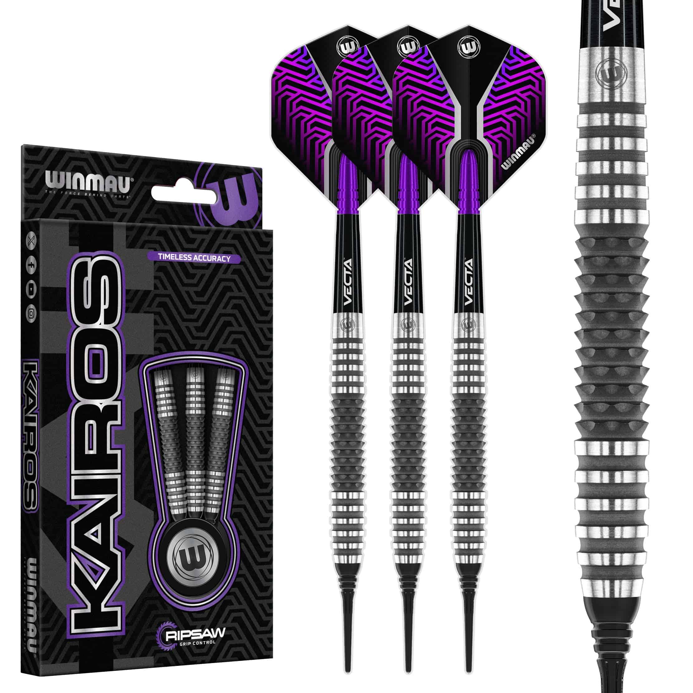 Juego de Dardos de Punta de Acero Winmau Kairos Series 90% de Tungsteno Profesional, diseñado para jugadores que exigen tecnología de agarre de vanguardia y máxima consistencia en su juego. Fabricada con un 90% de tungsteno, la serie Kairos proporciona un equilibrio y durabilidad excepcionales, permitiéndote alcanzar tu objetivo con precisión.