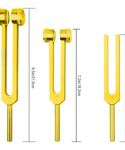 Un set de diapasones de alta calidad que incluye 3 diapasones de frecuencias 128Hz, 256Hz y 512Hz, junto con bolsas de almacenamiento y martillos. Los diapasones están diseñados con precisión de frecuencia para pruebas de conducción ósea y afinación de instrumentos. Ideal para personas espirituales que practican yoga y meditación, ya que ayudan a tonificar los chakras del cuerpo y reducir el estrés mental. Hechos de aluminio de alta calidad y con un martillo de silicona suave para un uso cómodo. Compactos y ligeros para facilitar su uso en cualquier lugar.
