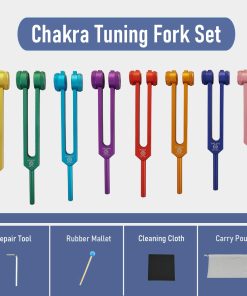 Completo Set – El Juego de Diapasones de Chakra incluye 8 diapasones con frecuencias precisas de 126.22 Hz, 136.1 Hz, 141.27 Hz, 172.06Hz, 194.18Hz, 210.42Hz, 221.23Hz, 272.20Hz, 1 bolsa de transporte, 1 mazo de goma, 1 paño de limpieza, 1 herramienta de reparación.