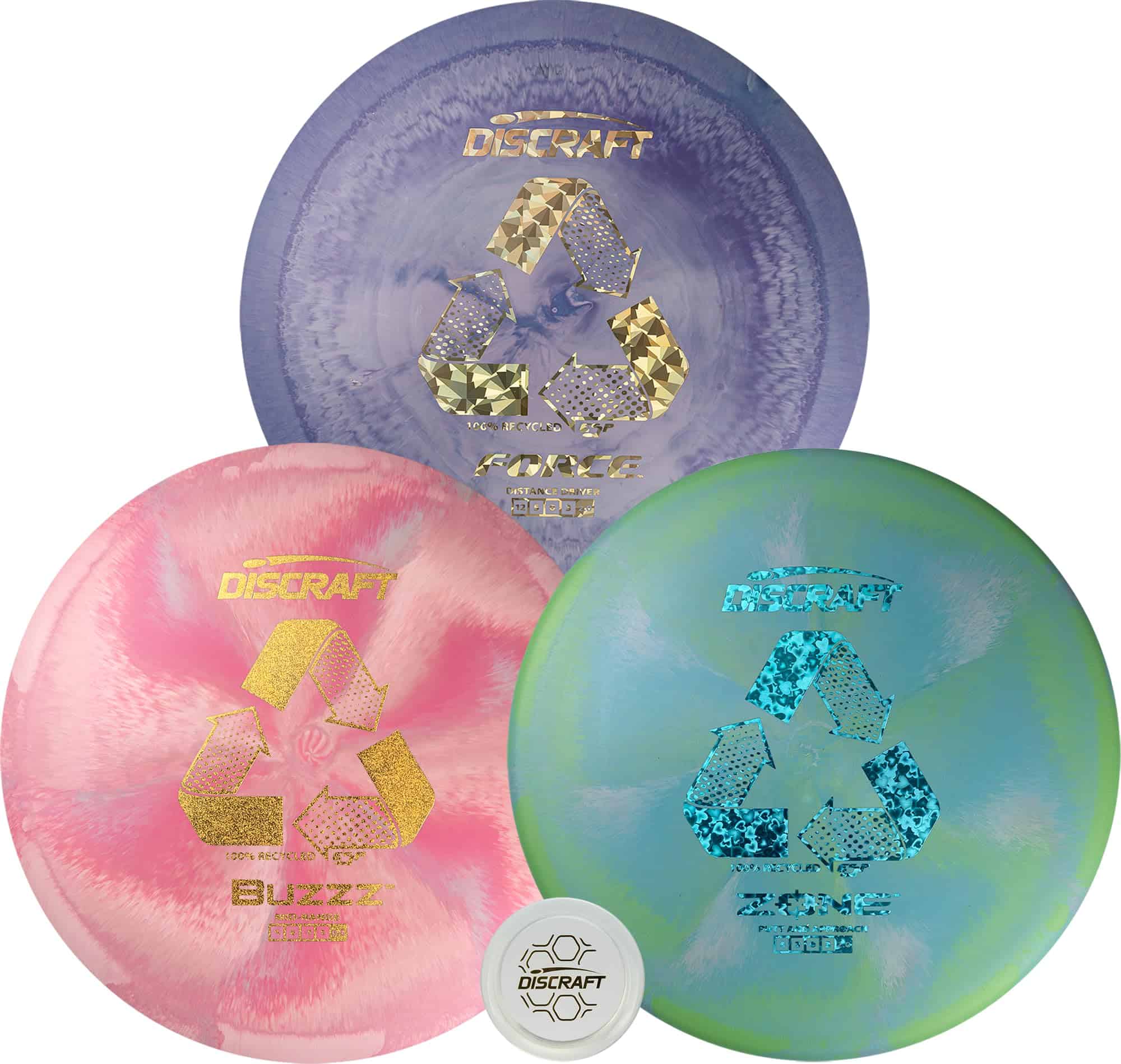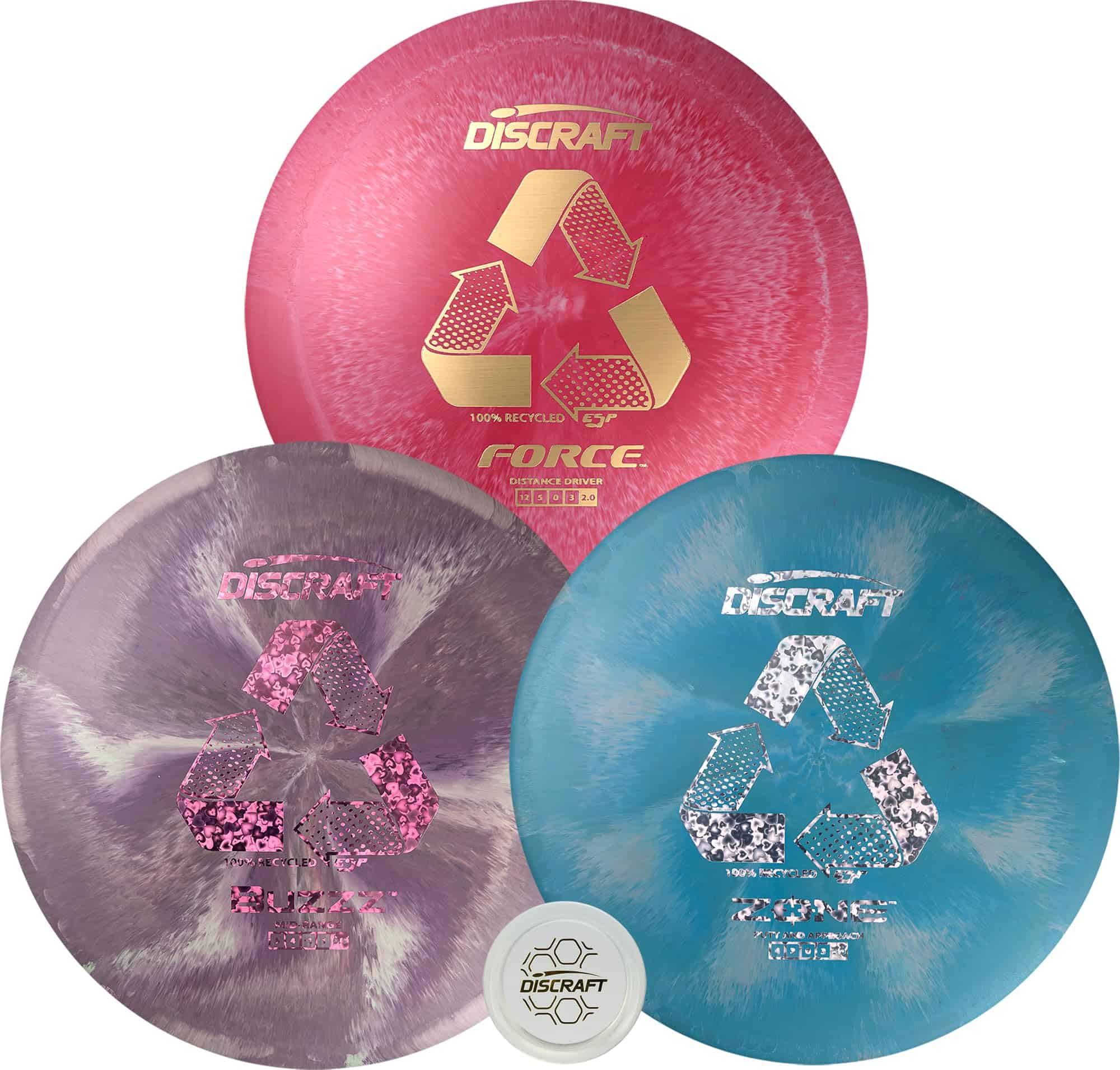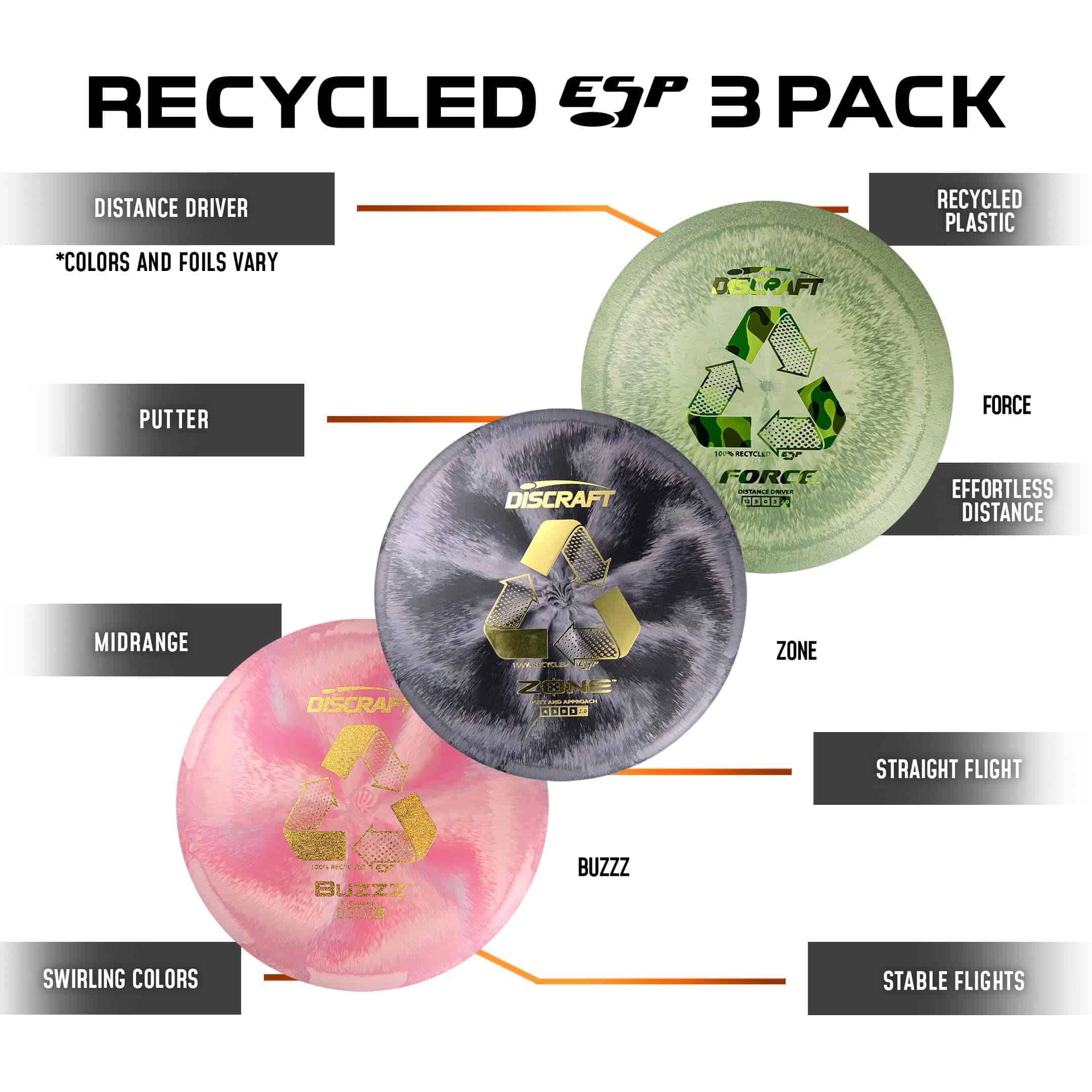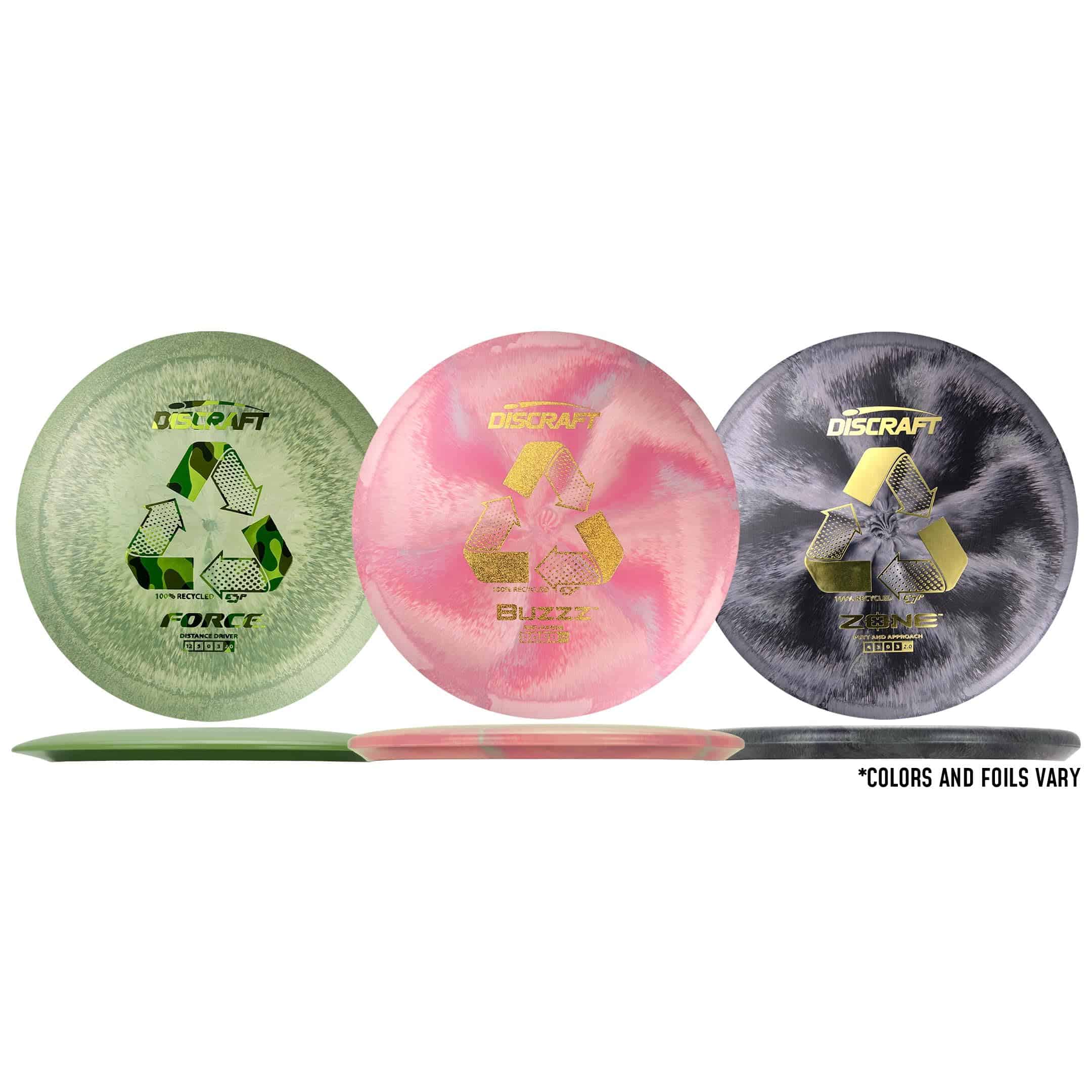 Juego de Disc Golf Reciclado ESP 3-Pack – Incluye Buzzz,