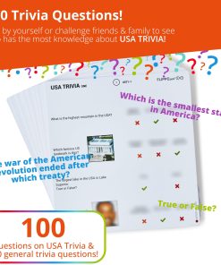 Desafía tu conocimiento de EE. UU. con el Juego de Cuestionario Flippo Pad! No solo es este juego una fuente fantástica de entretenimiento, sino que también sirve como una valiosa herramienta educativa. ¡El juego de trivia llega completo con el dispositivo Flippo Pad y 25 tarjetas de trivia! El paquete de trivia tiene 100 preguntas divertidas e interesantes sobre EE. UU. y 100 preguntas de conocimiento general, diseñadas para ayudar a mejorar el conocimiento, la memoria y la inteligencia. Simplemente inserta las tarjetas de trivia en el dispositivo, lee la pregunta y mueve el círculo verde sobre tu respuesta elegida. ¡Mueve el deslizador para revelar las respuestas correctas y ver si respondiste correctamente! Mantén el juego en marcha reiniciando los deslizadores y moviendo la tarjeta jugada hacia la parte trasera de la baraja. ¡Hay 3 modos de juego diferentes para probar! Incluye un conjunto de instrucciones y 4 hojas de puntuación! El Juego de Cuestionario Flippo Pad es un regalo brillante para mentes curiosas! ¡Ya sea para cumpleaños, vacaciones, vacaciones o fiestas, este juego promete horas de entretenimiento para toda la familia! ¡Juega al juego de cuestionario Flippo Pad solo o desafía a amigos y familiares para ver quién tiene más conocimiento sobre EE. UU!. ¡El dispositivo de cuestionario Flippo Pad es compatible con todos los paquetes de trivia Flippo Pad! ¡Tenemos una amplia gama de paquetes de tarjetas de trivia disponibles, para que puedas explorar y desafiarte a ti mismo en una variedad de temas diferentes! ¡Nuestros otros temas de tarjetas de quiz incluyen: Insectos, Animales del bosque, Geografía, Espacio, Monumentos, Criaturas marinas, Animales de la jungla y más! Con muchos paquetes diferentes para elegir, ¡hay una oportunidad interminable de aprender y divertirse!