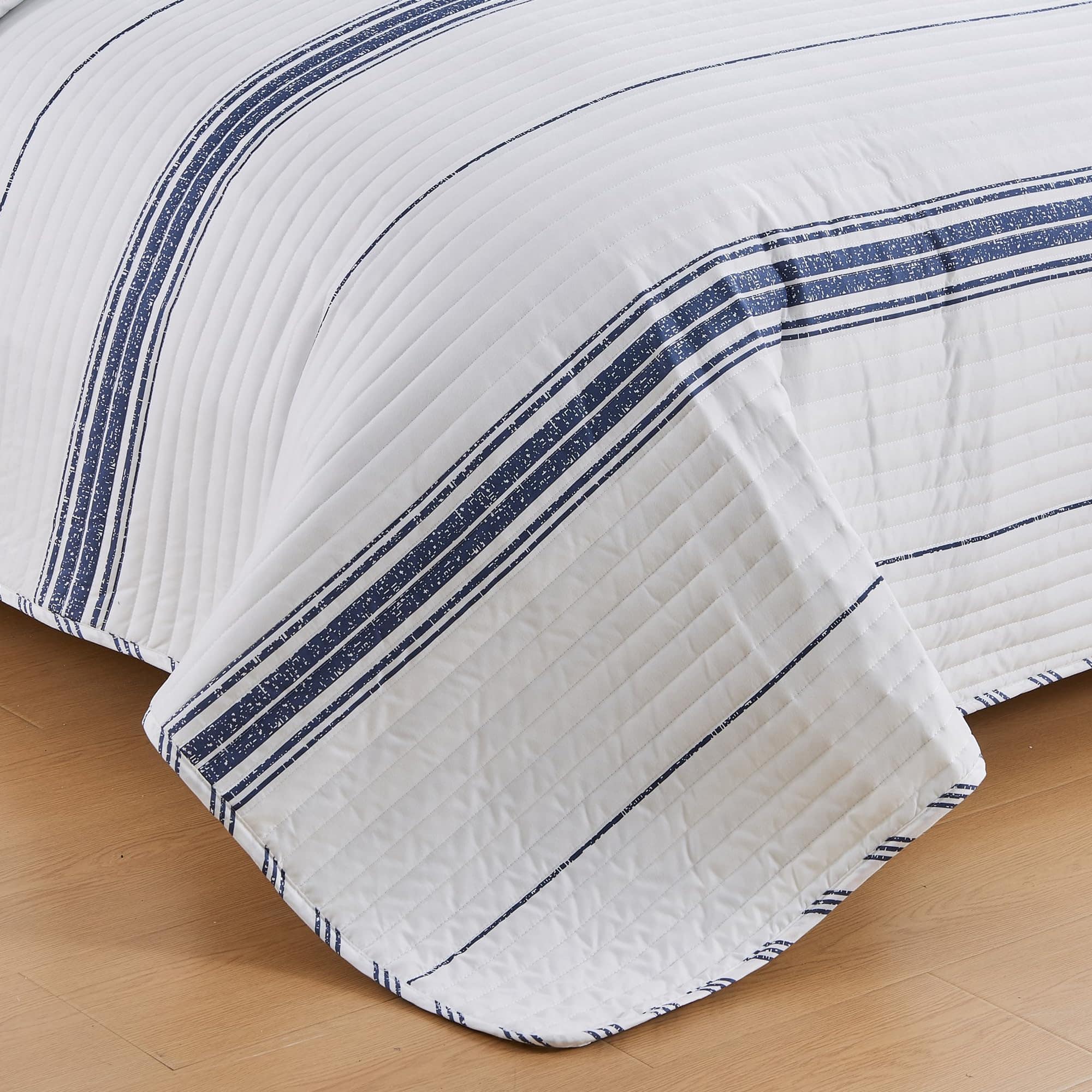 Juego de edredón a rayas en color azul marino para cama