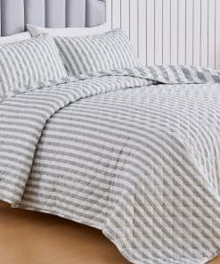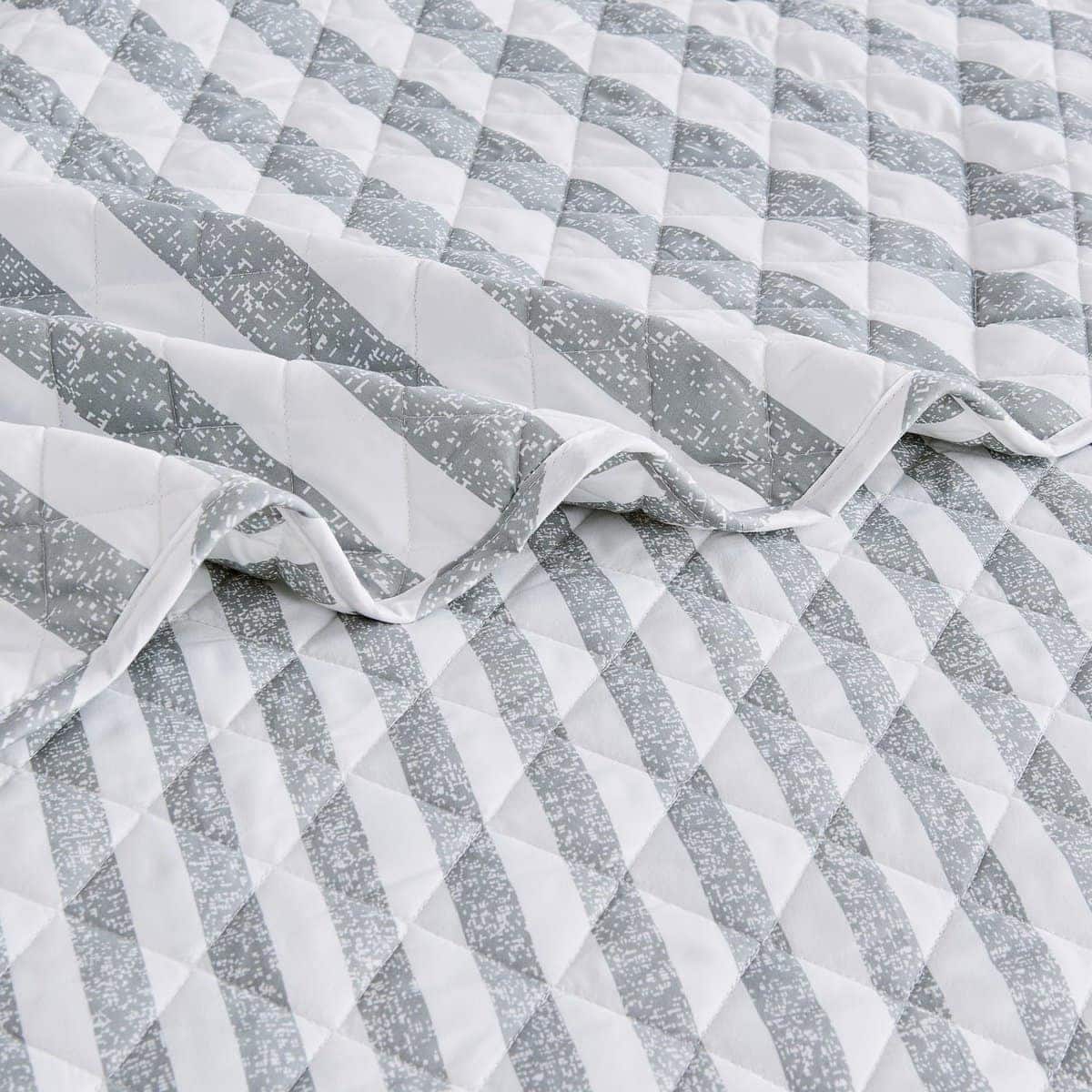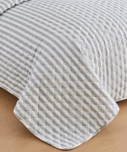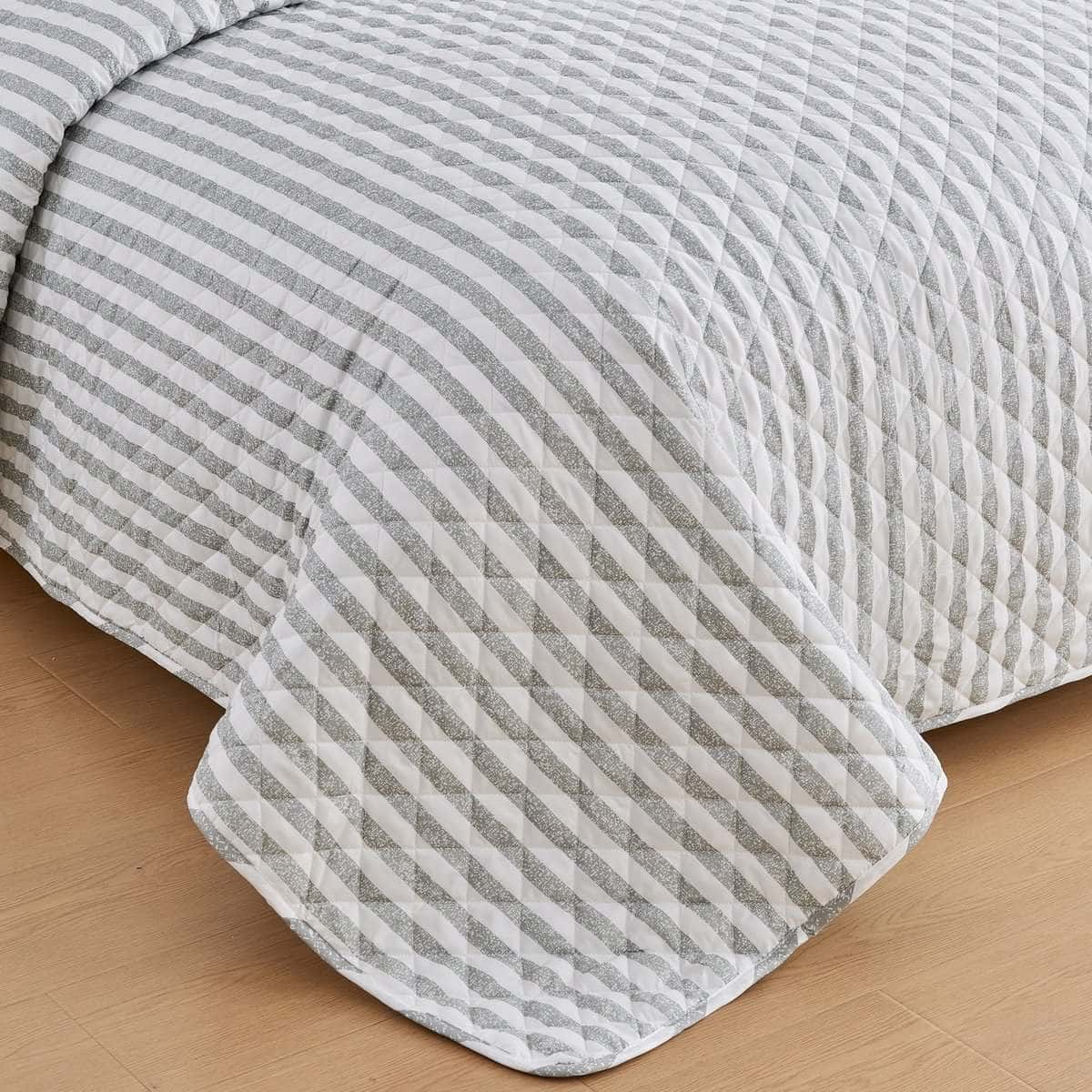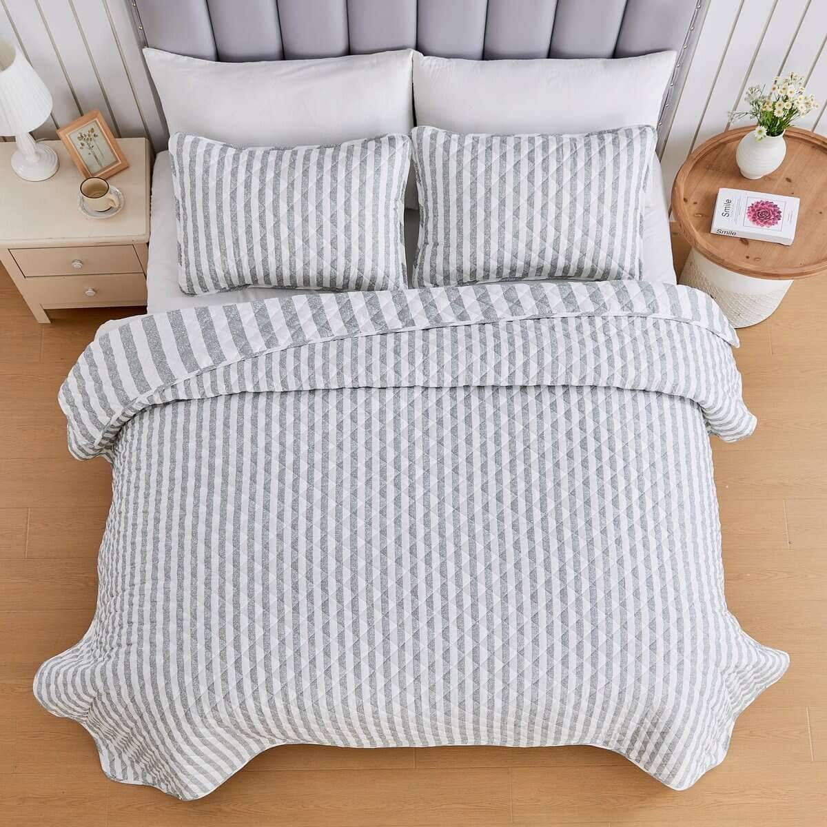 Juego de Edredón a Rayas Gris King Size | Colcha de