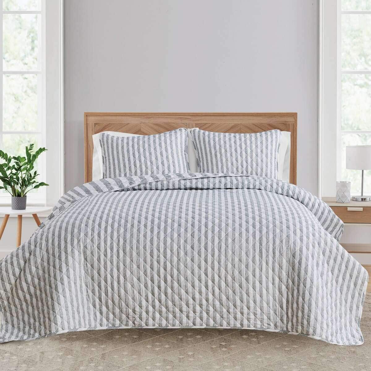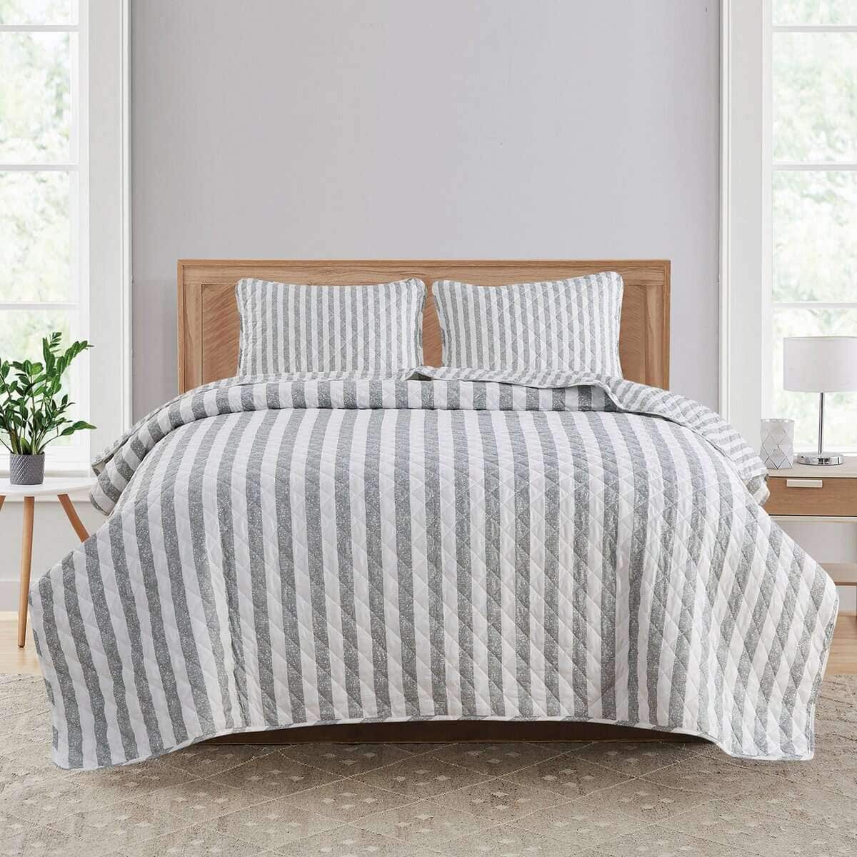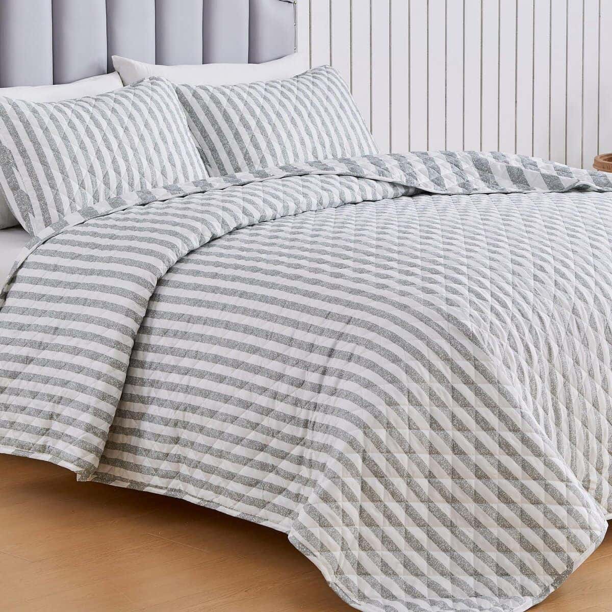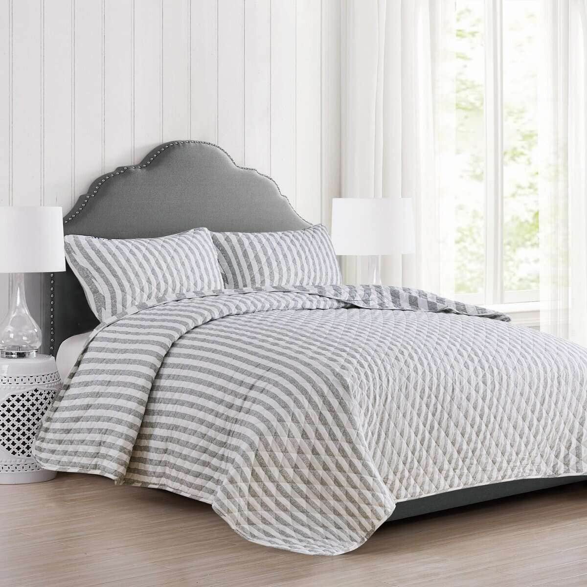 Juego de Edredón a Rayas Gris King Size | Colcha de