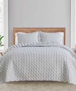Agrega comodidad casual con un toque moderno a tu hogar con este hermoso Juego de Edredón Reversible a Rayas de 3 Piezas de la Colección Avery de Market & Place. Elaborado con un exterior de microfibra suave y transpirable y un relleno de poliéster, este juego de edredón te mantiene acogedor y cómodo durante todo el año. Su diseño clásico a rayas en gris claro y blanco con un patrón de rayas simple en el lado reverso es el complemento perfecto para colocar sobre tu cama. Este juego de edredón es lavable a máquina para un cuidado fácil y un uso prolongado. Cada juego de edredón viene con un edredón y dos fundas (una funda para tamaño Twin). Elige entre tres tamaños: Twin: 1 Edredón (90″ x 66″), 1 Funda Estándar (20″ x 26″), Queen: 1 Edredón (90″ x 90″), 2 Fundas Estándar (20″ x 26″), King: 1 Edredón (90″ x 108″), 2 Fundas King (20″ x 36″)