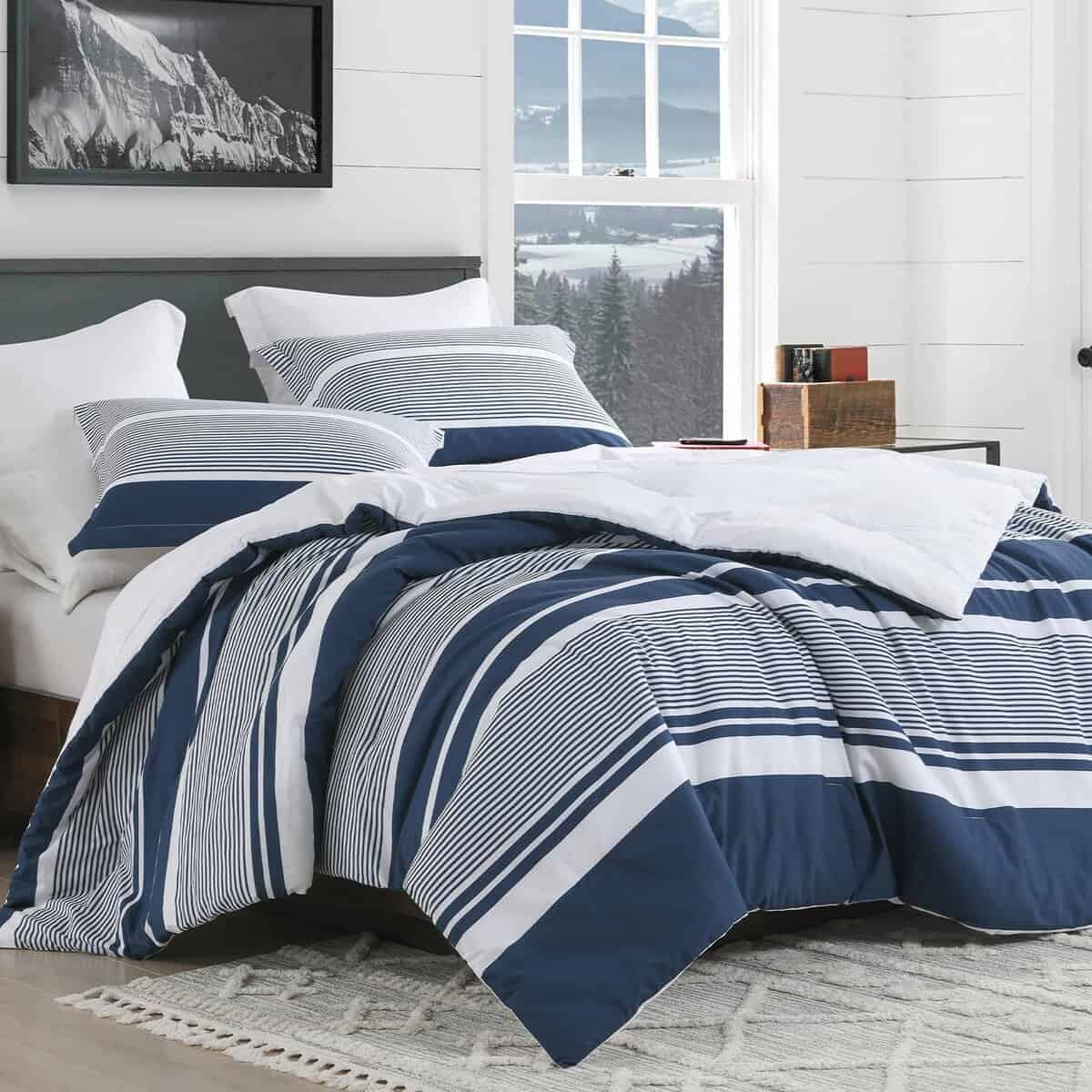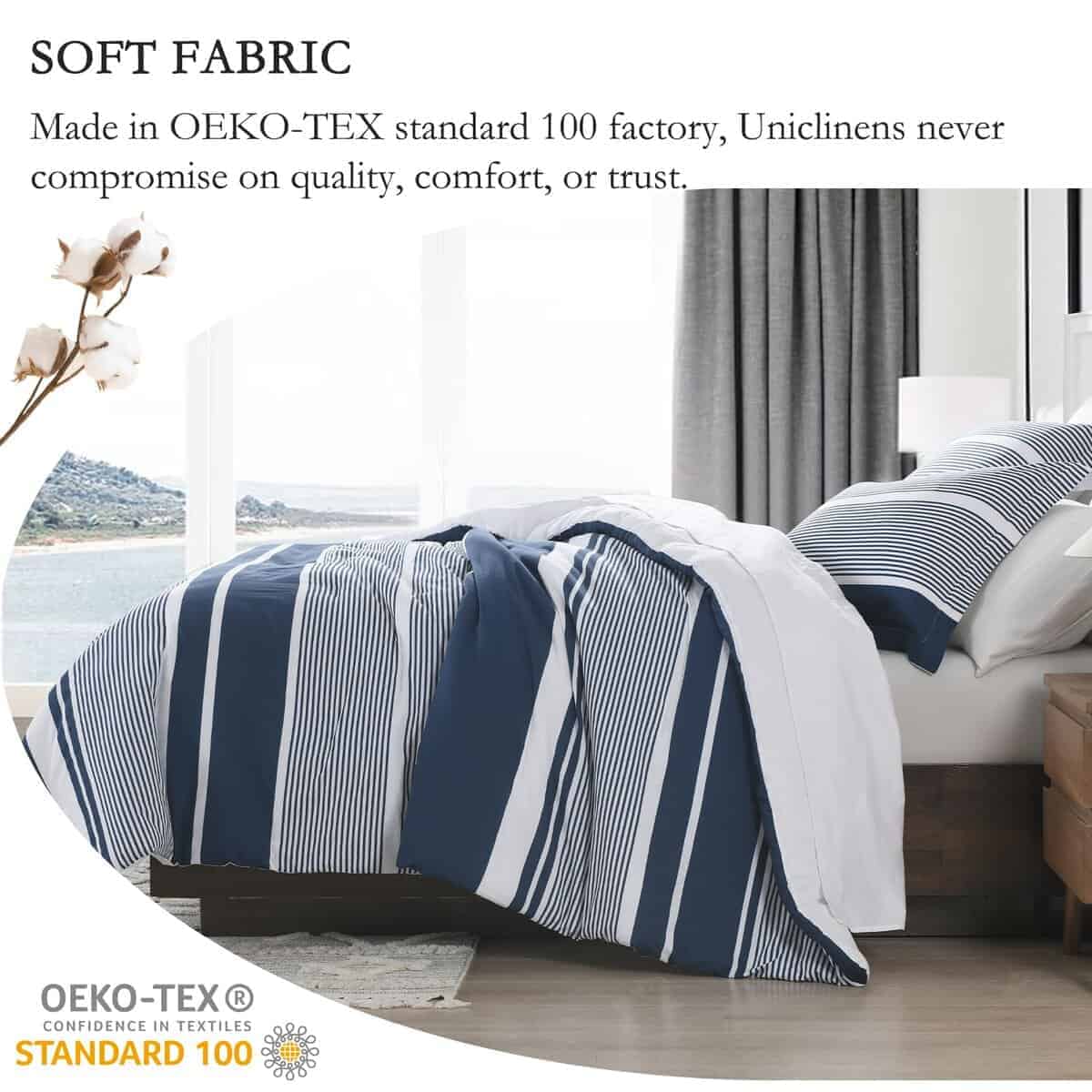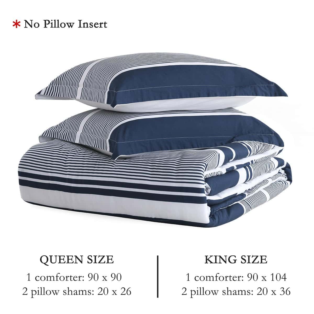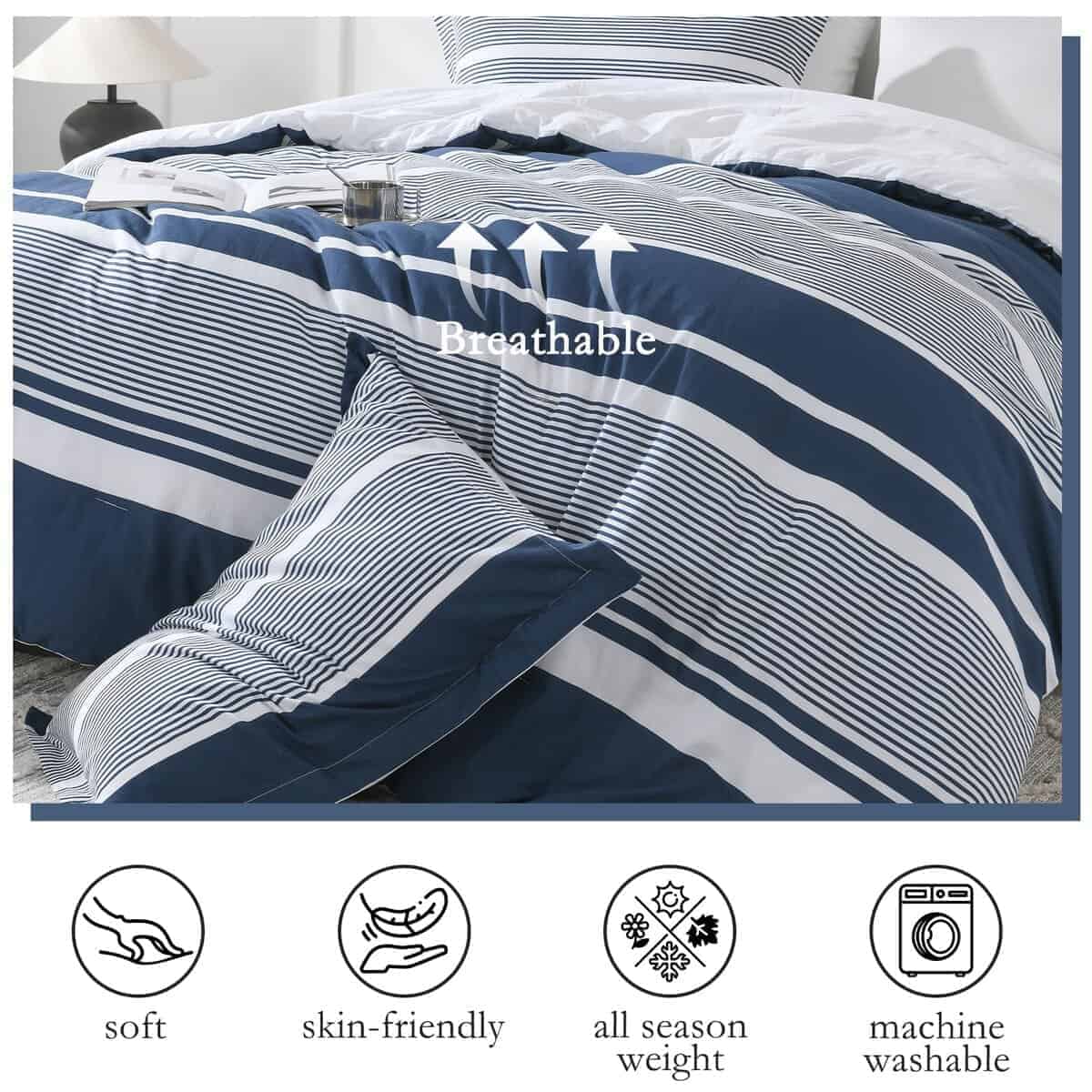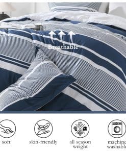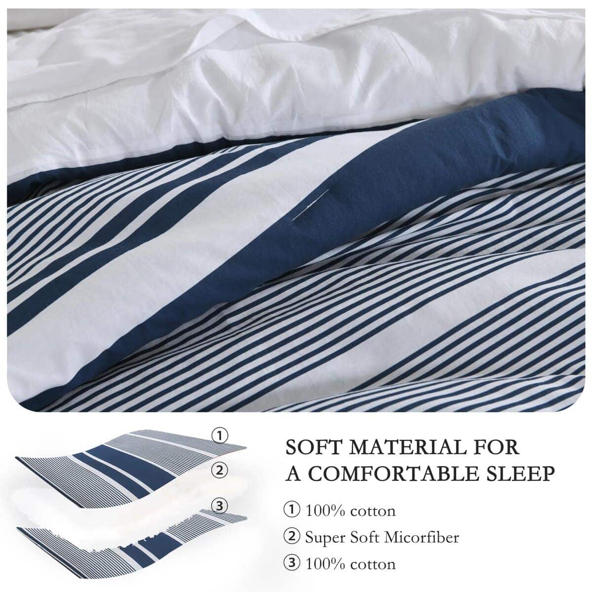 Lightweight Comforter: Navy stripe comforter king size crafted from 100% cotton fabric with premium polyester filling that offers good fluffy performance of the comforter, soft, light weight, breathable and durable. Creating cozy and comfy sleeping environment, providing cloud-like feeling for you.