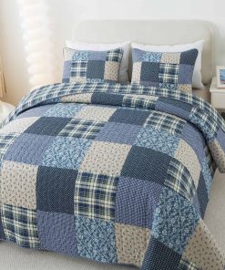 Adéntrate en el corazón del encanto del campo con el juego de edredón de algodón Azul Symphony de SLPR. Esta colcha acolchada de patchwork de estilo granja es el epítome de la comodidad y el confort, ofreciendo un diseño tradicional de patchwork que aporta un toque de carácter a cualquier casa o cabaña. Con su encantadora mezcla de patrones y rayas en cuadros, este juego de ropa de cama es un homenaje al diseño y colores clásicos, presentando varios tonos de azul que evocan una sensación de calma y serenidad.