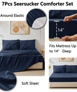 Juego de edredón acolchado CozyLux Navy Blue Twin de 5