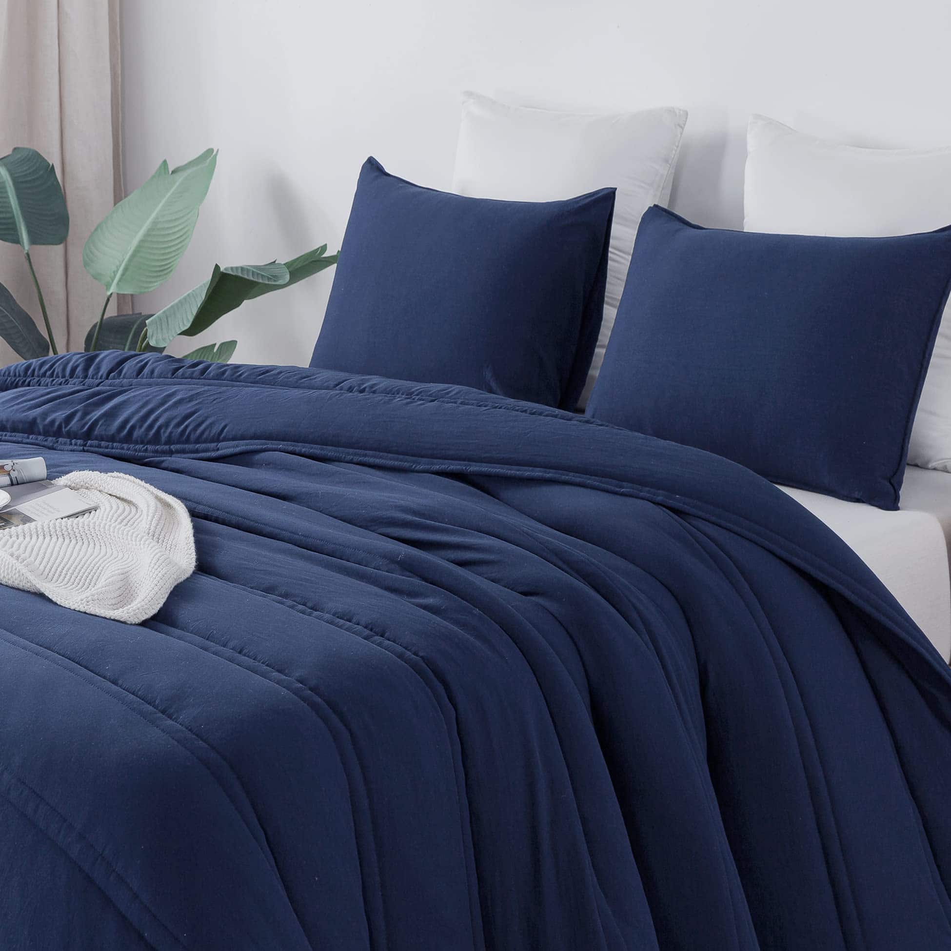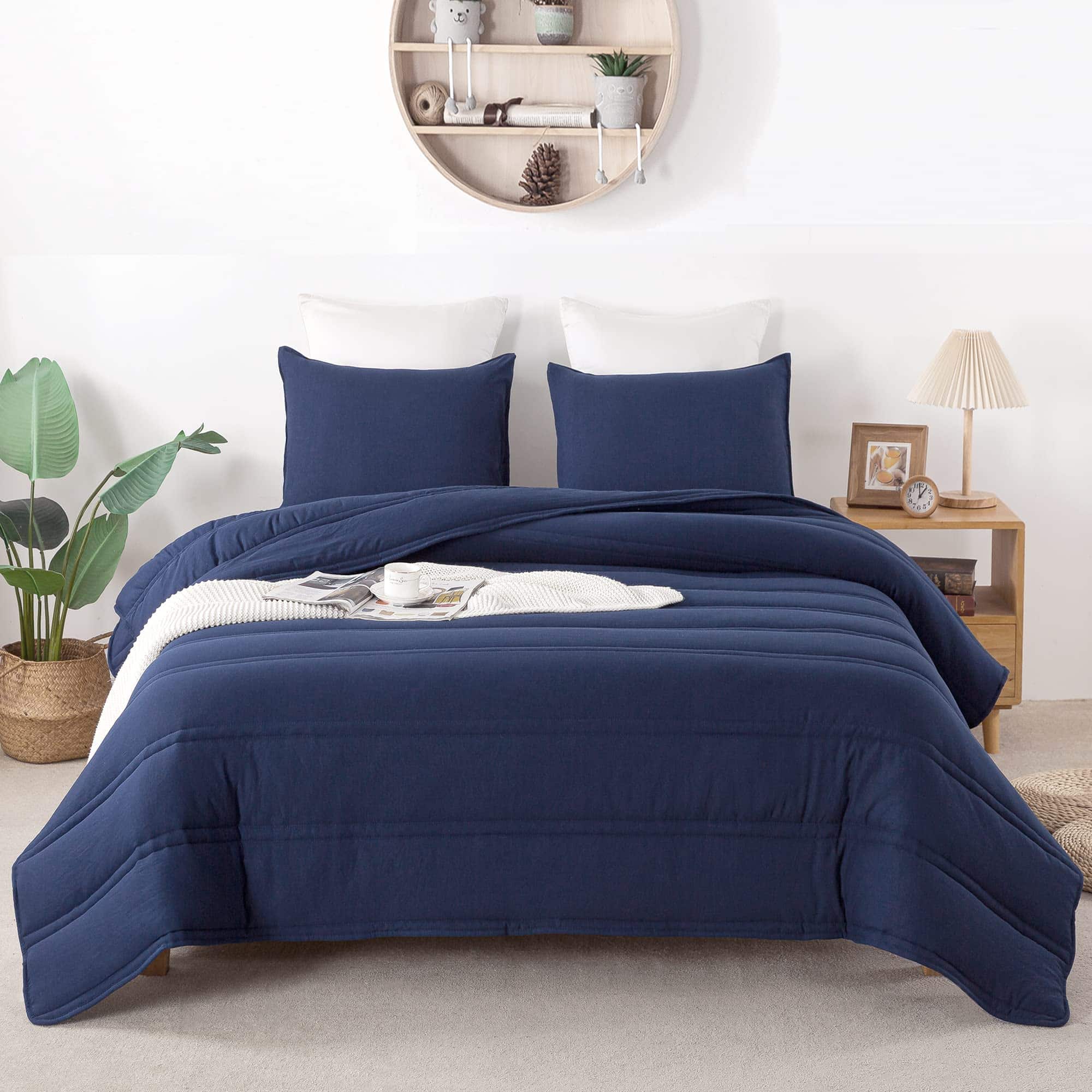 Juego de Edredón Anna.Z de 3 Piezas, Relleno -Azul Marino