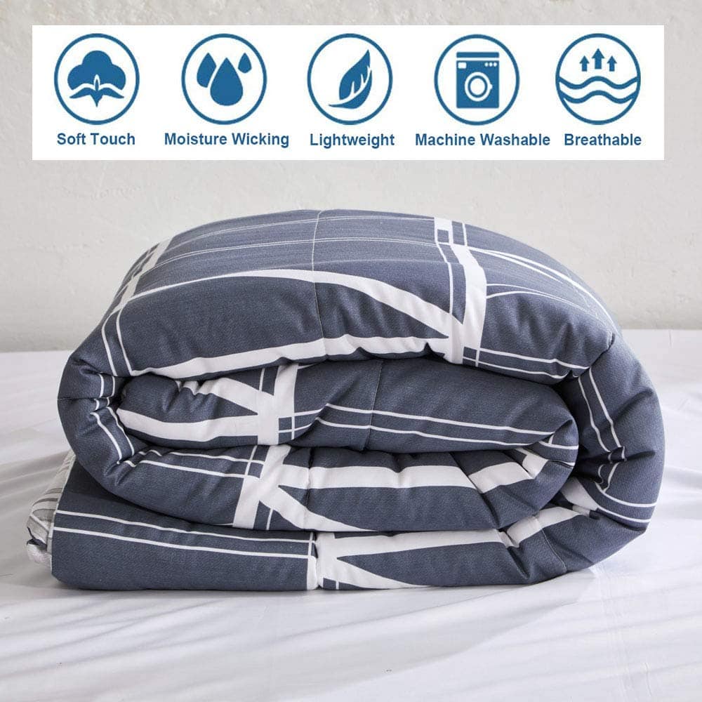 1. Material: El juego de edredón ATsense está hecho de tela de algodón 100% y relleno de microfibra ultrasuave, muy amigable con tu piel. 2. Tamaño estándar: El juego de edredón Queen incluye 1 edredón (90″x 90″), 2 fundas de almohada (26″x20″), tamaño Full/Queen. 3. Suavidad superior: El edredón ATsense mantiene tu cama a una temperatura acogedora, te proporciona una experiencia de sueño cómoda, cálida, esponjosa y transpirable. Peso perfecto para mantenerte cómodo pero lo suficientemente ligero como para evitar que te despiertes sudando. 4. Estilo simple: Diseños para crear un look simple y clásico para tu dormitorio. Idea de regalo moderna y simple para adolescentes, niños, niñas, hombres o mujeres. Se puede usar tanto como edredón o como inserto de edredón. 5. Fácil cuidado: Lavable a máquina, secado a baja temperatura y no planchar. Sin encogimiento, sin decoloración y sin deshilachado después del lavado.