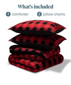 Juego de Edredón Bare Home – Tamaño Completo – Ultra Suave – Alternativa de Plumas de Ganso – Serie Premium 1800 – Calidez para Todas las Estaciones (Completo, Buffalo Plaid – Rojo/Negro/Negro). Nuestro juego de edredón incluye un edredón de tamaño completo ultra suave (86 por 82 pulgadas) y una funda de almohada a juego (21 por 27 pulgadas). Tejido de microfibra premium de 1800 hilos con el relleno de poliéster de 300 gsm proporciona una comodidad lujosa durante todo el año. Fácil de cuidar, lavar a máquina en agua fría en ciclo suave. Secar al aire o secar a baja temperatura. Certificado OEKO-TEX STANDARD 100, probado rigurosamente contra una lista de más de 1,000 sustancias nocivas. Nuestros productos están diseñados con la mejor artesanía para garantizar durabilidad y suavidad. ¡Compra productos más seguros para ti y tu familia con Bare Home! 30 noches de garantía, si no estás satisfecho, devuélvelo.