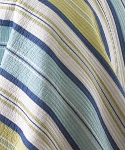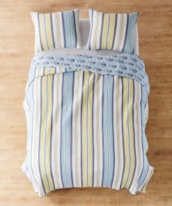 Uno de nuestros juegos de edredón más populares, Bayport está inspirado en unas vacaciones bañadas por el sol en una isla arenosa, con una franja clásica y audaz en azules y crema sobre un fondo blanco roto y un encantador patrón de reverso de divertidos peces en azul oscuro sobre un fondo azul claro. Un borde ribeteado proporciona contraste y textura para completar el look. Las fundas de almohada a juego se cortan aleatoriamente del mismo tejido que el edredón, haciendo que cada funda sea única y no idéntica a ninguna otra funda. Hecho de 100% algodón y relleno con un relleno rico en algodón (que incluye poliéster y otras fibras), este edredón nunca se sentirá pesado, rígido o incómodo, el juego de edredón y funda de almohada Bayport tiene una sensación ultra suave que simplemente te encantará. Nuestro edredón es muy generosamente tamaño (88x92in.) para dar a tu dormitorio una sensación de comodidad y lujo. Pre lavado para tu conveniencia, el juego de edredón y funda de almohada Bayport es fácil de cuidar. Simplemente lavar a máquina en ciclo suave y frío, luego secar al aire o secar en secadora a baja temperatura. Crea un espacio de dormitorio maravilloso con nuestro juego de cama reversible coordinado. El diseño de rayas costeras trae acentos clásicos del océano a tu hogar y combinará con una variedad de looks diferentes y decoración de dormitorio. También puedes refrescar tu habitación con cojines decorativos coordinados y fundas de almohada euro de la colección Levtex Home.
