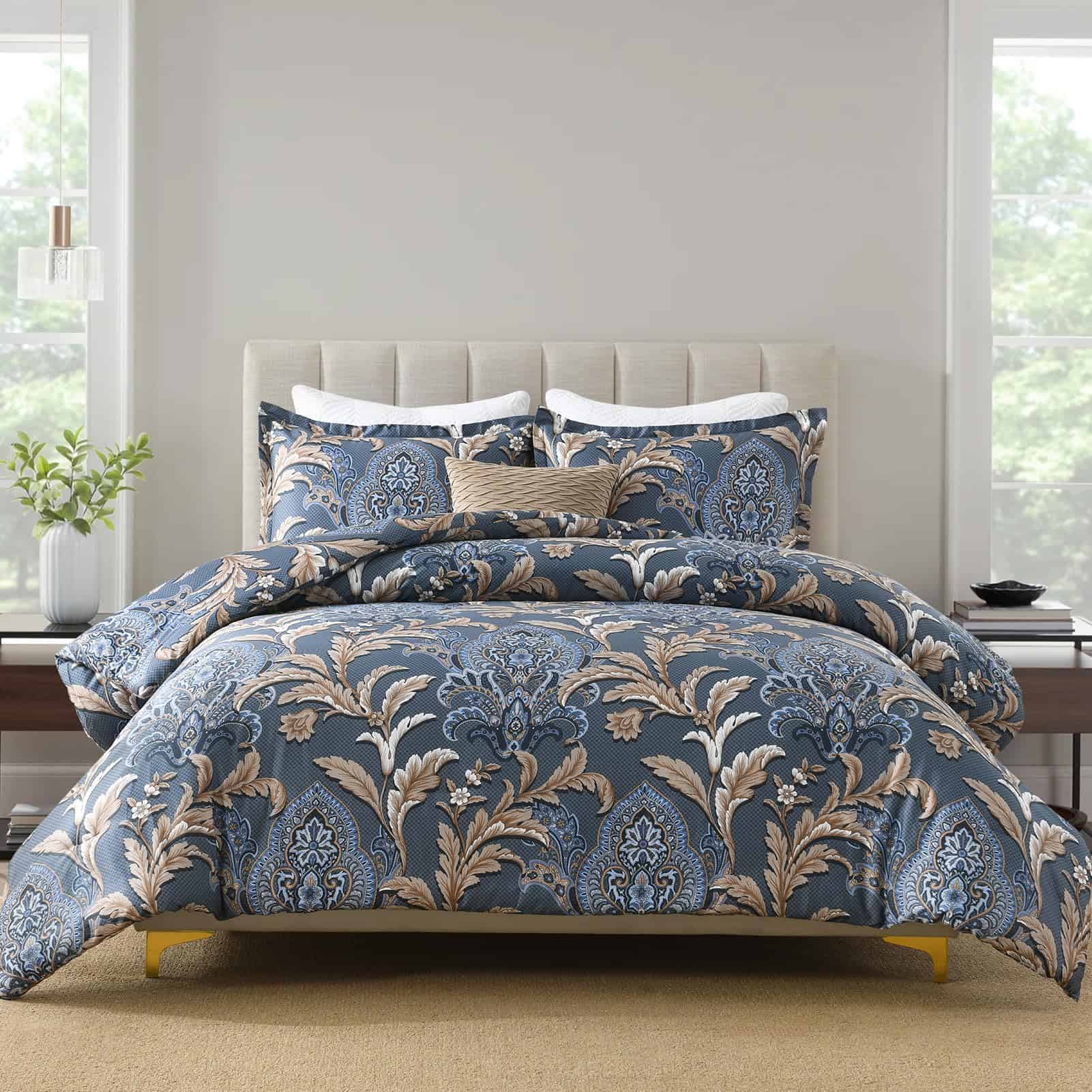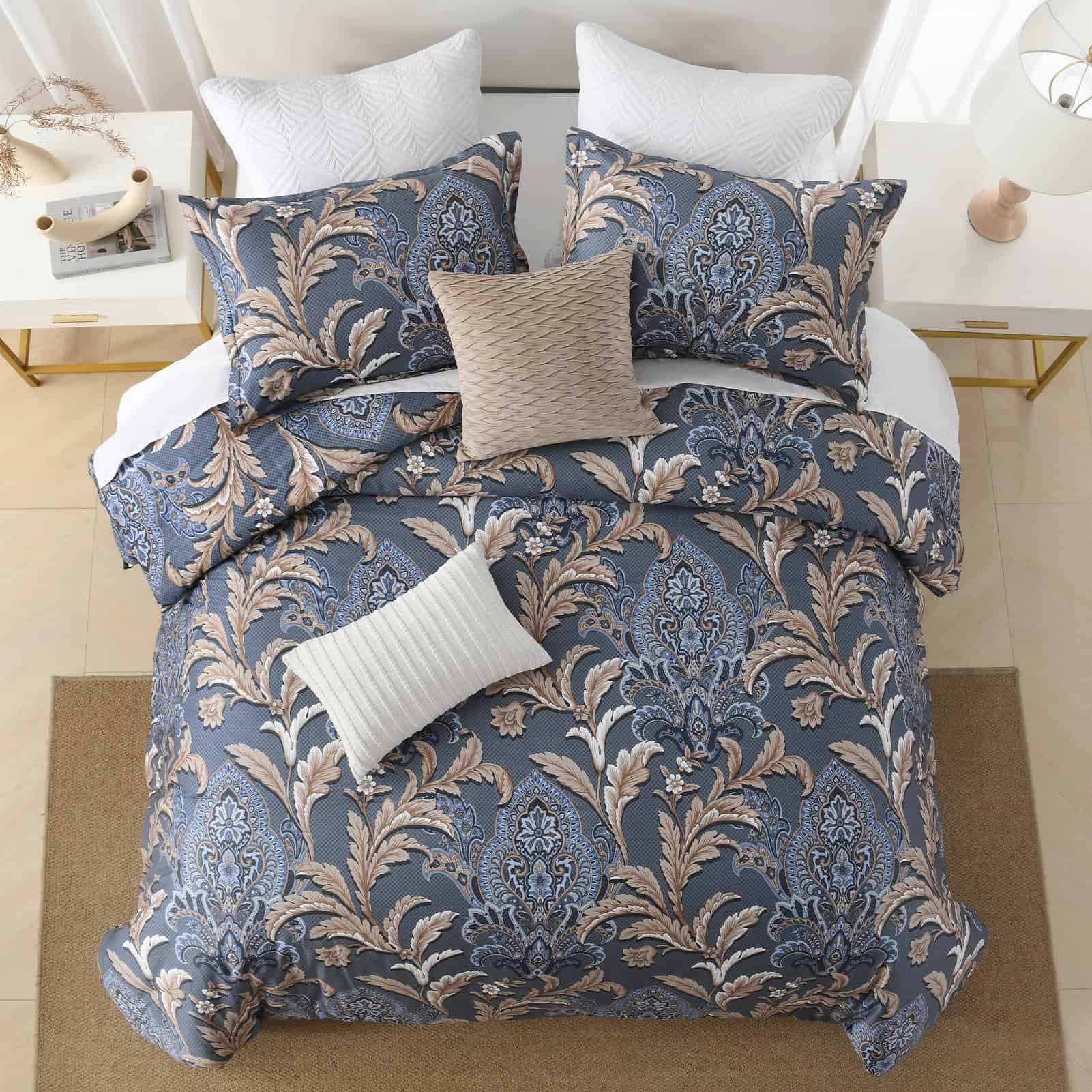 Juego de Edredón Bedduvit Navy Damask Queen – Juego de Cama
