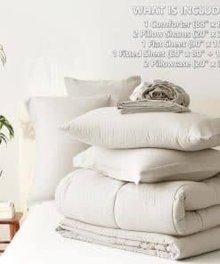 Juego de edredón beige CozyLux para Queen 7 piezas Juego de
